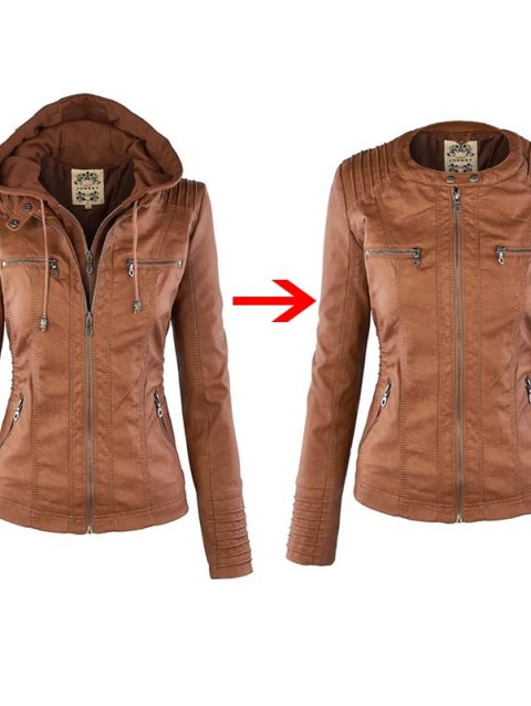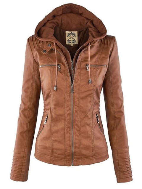 Faux Leather Jacket Women 2022 Khaki Winter Motorcycle Jacket Gothic Hoodies Outerwear Faux Leather PU Basic Jacket Coat