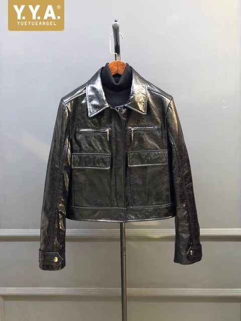 Female Top Quality New Genuine Leather Oil Wax Jacket Turndown Collar Spring Autumn Short Coat Real Sheepskin Workwear Outerwear