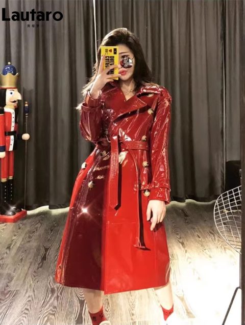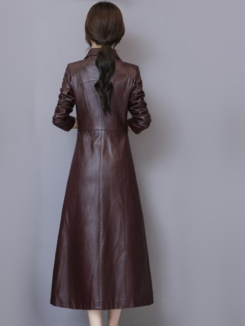 New Autumn Winter Fashion Black Brown Retro Medium and Long Knee Pu Leather Jacket High-end Women’s Loose Leather Trench Coat
