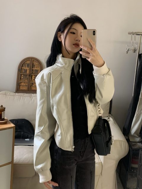 Nibber 2024 Autumn New Vintage Classic Black Hottie Mysterious All-Match Casual High Street Cool Confident Women’s Matte Jacket