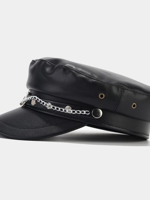 Fashion PU Leather Beret Vintage England Flat Newsboy Caps Outdoor Casual Army Cap