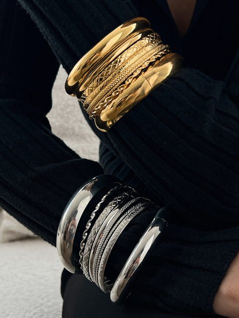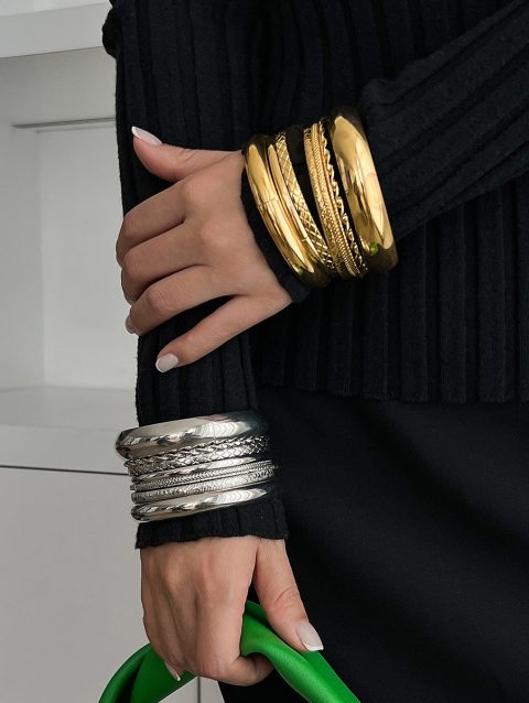 KMVEXO Stainless Steel Bracelets Set for Women Men Twist Texture Bangles Gold Silver Color Jewelry Statement Streetwear Goth