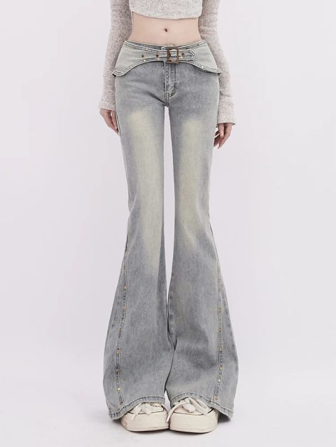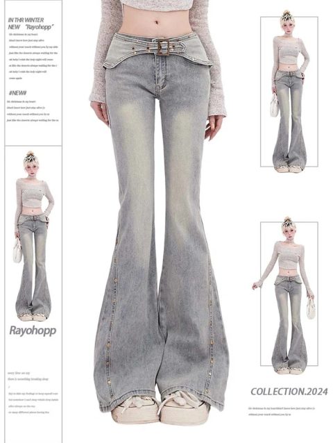 Korean Light Blue Flare Jeans Women Y2k Low Rise Vintage Denim Trousers Fashion Skinny Classic Aesthetic Harajuku Pants