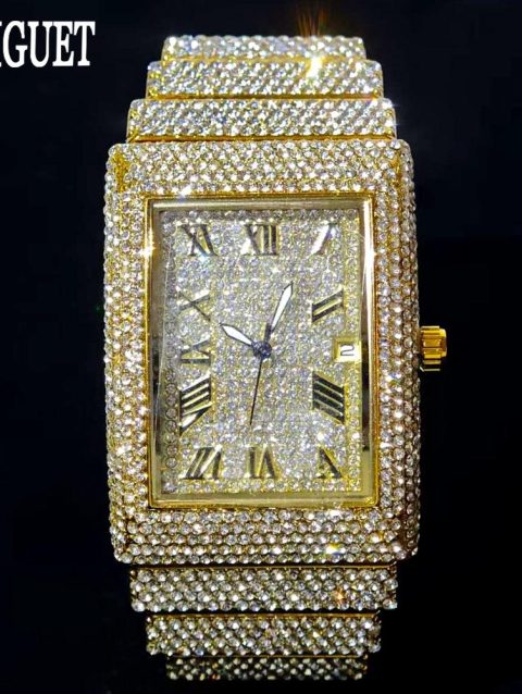2025 Luxury Brand UNIGUET Quartz Diamond Watch For Men Fashion Hip Hop Full Diamond Bling Jewelry Wristwatches Man Dropshipping