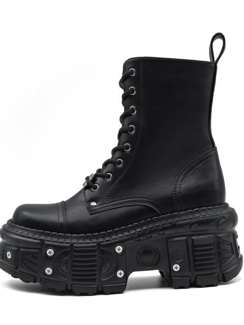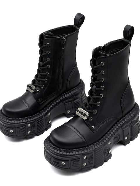 2025 New Punk Women Platform Ankle Boots Female’s Rock Round Toe Lace Up Fashion Retro Chunky Shoes Metal Decor Short Boots
