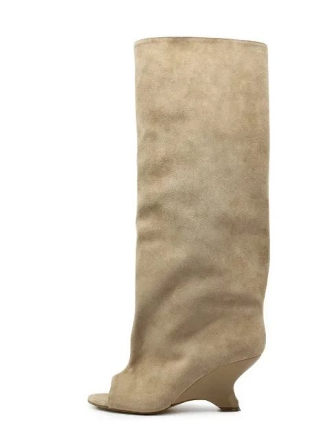 2025 Women’s Fish Mouth Thick High Heels Knee Length Cool Boots Slant Heel Fashion Show Large Size Spring/Summer Women’s Boots