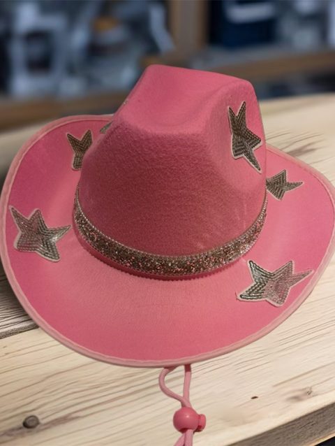 Women Glitter Cowboy Hat with Sequin Stars and Wide Brim Stylish Western Beach Hat for Wedding Carnival Rave Party and