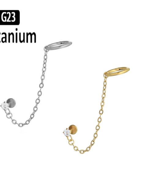 ASTM F136 Titanium Piercing 16G Earring Nose Rings with Chain and Labret Ear Stud Cartilage Helix Punk Lip Piercing Body Jewelry