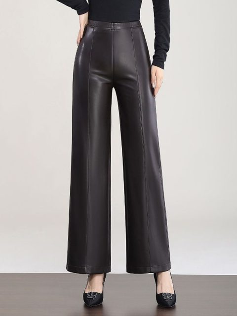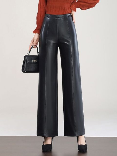 Autumn New Genuine Leather Pants Women’s High Waist Slimming Straight Pants Outer Wear Fleece-Lined Casual Sheepskin Long Pants