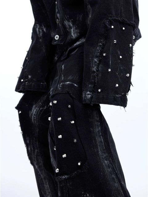 American Vintage Gothic Men Denim Shorts Pattern Embroidery Loose Unisex Shorts Y2K Printing Korean Casual Fashion Couple Shorts