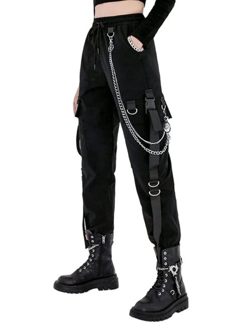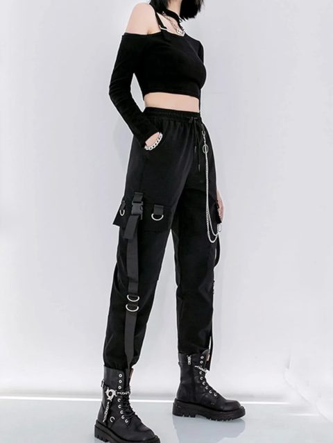 Black Casual Pants for Women in Spring Autumn Korean Style Ins Hip-Hop Student Loose High-Waisted Slim Legged Cargo Pants Trendy