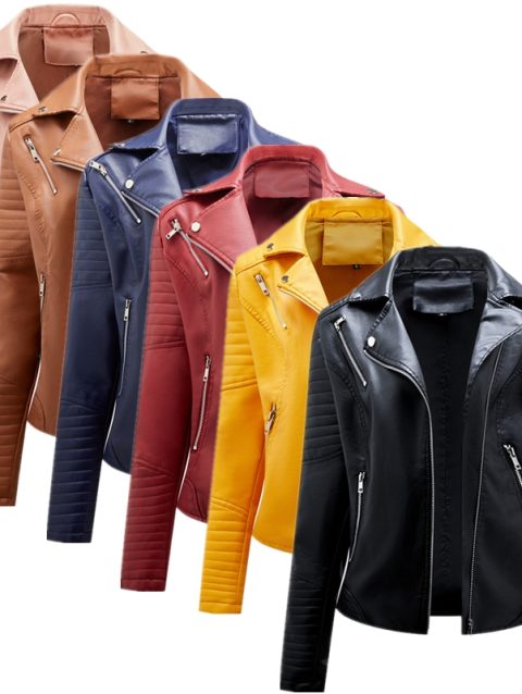 Black Lapel Women Faux Leather Jacket Spring Autumn Zipper Casual Pu Coat Female Biker Outerwear Ladies Clothes S-L XL XXL XXXL