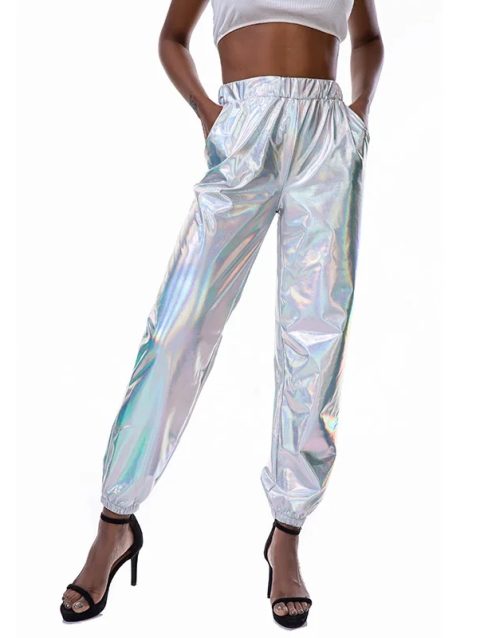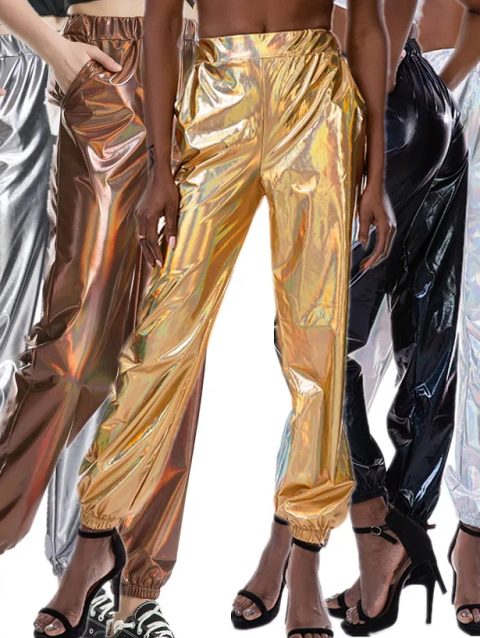 Women Shiny Glittery Street Hip-hop Party Sparkly Long Pants, Loose Casual Sports Trousers Green Gold Silver Black Optional