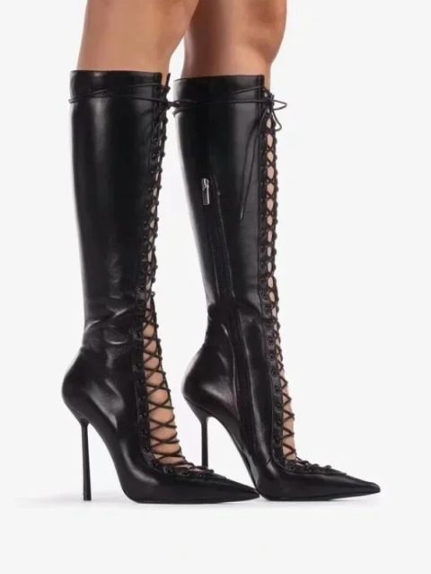 Spring/Summer New Lace Up Short Cool Boots Side Zipper Banquet Slimming High Heels Sexy Knee Length Women’s Boots