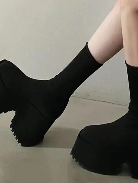 Sock Boots Woman Hided Wedge Platform Female Casual Shoes Autumn New Wedge Lady Knitting Short Ankle Boots Platform 11 CM