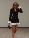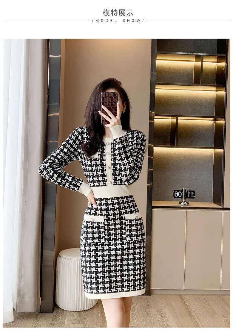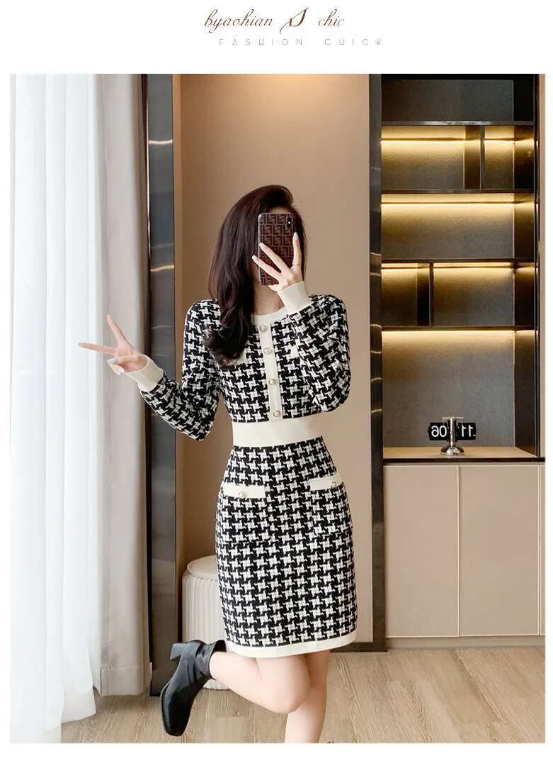Add to cart0906 Vintage Plaid Mini Dress Women Round Neck Short Sweater Dress Buttons Pockets Sexy Office Knitted Mini Dress Femme Elegant