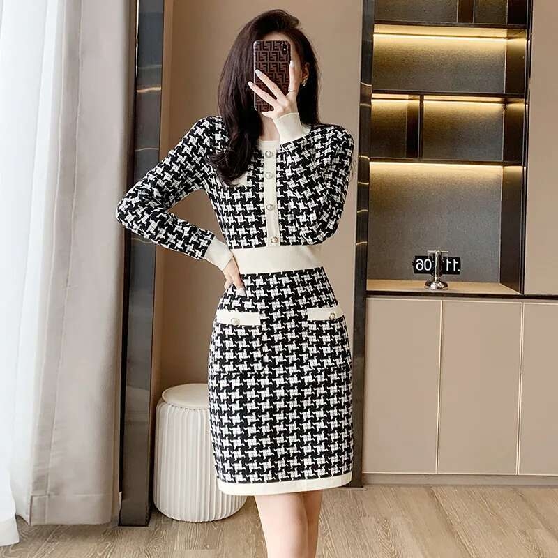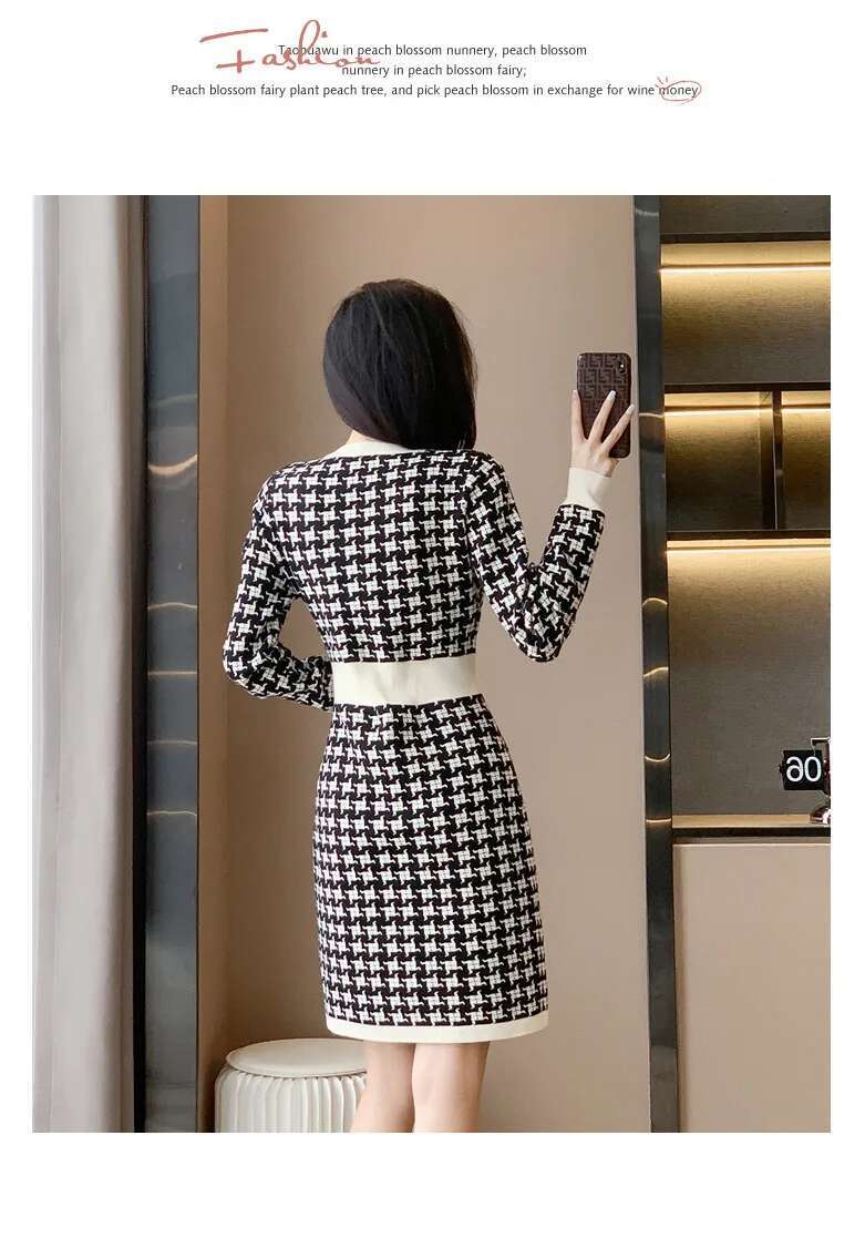 Be the first to review “0906 Vintage Plaid Mini Dress Women Round Neck Short Sweater Dress Buttons Pockets Sexy Office Knitted Mini Dress Femme Elegant” Cancel reply