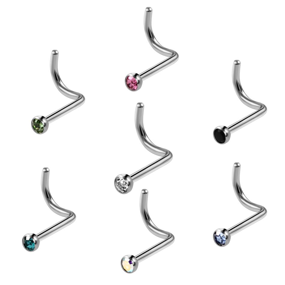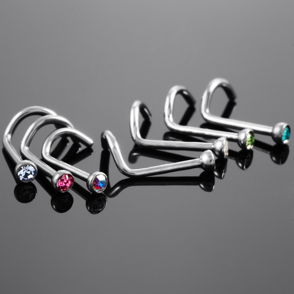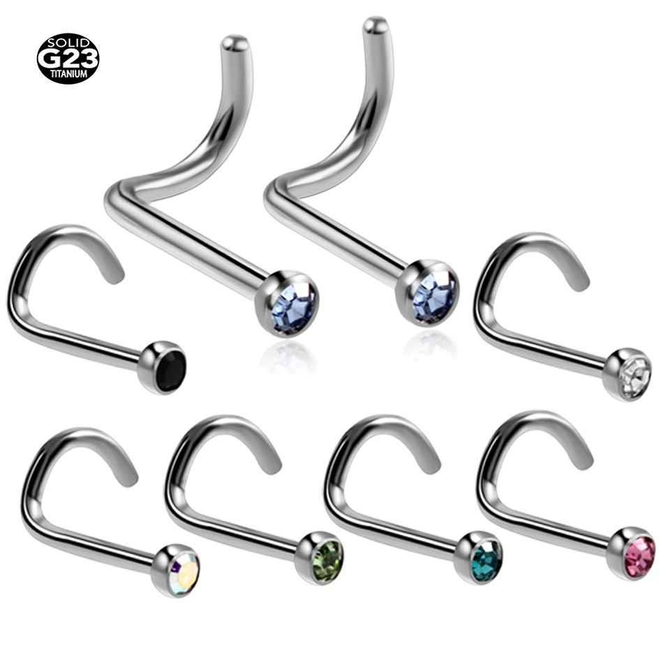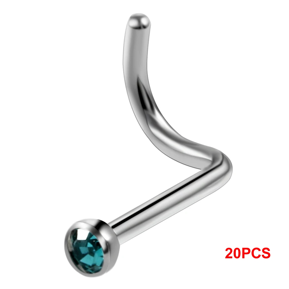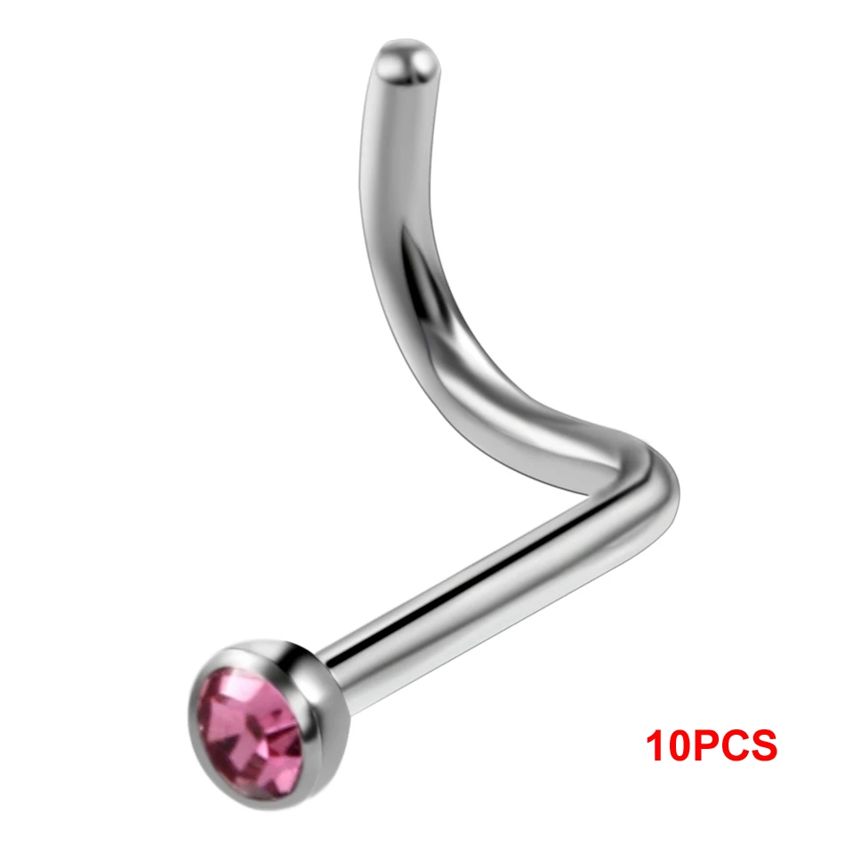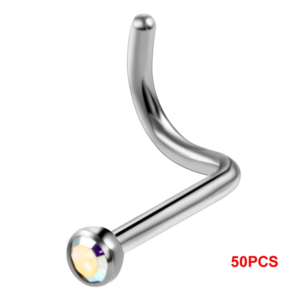 10Pcs/20Pcs/50Pcs G23 Titanium Nose Rings Studs Round Crystal Nose Rings Piercing Body Jewelry L-shape Nose Stud Zircon Nostril