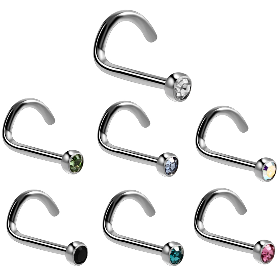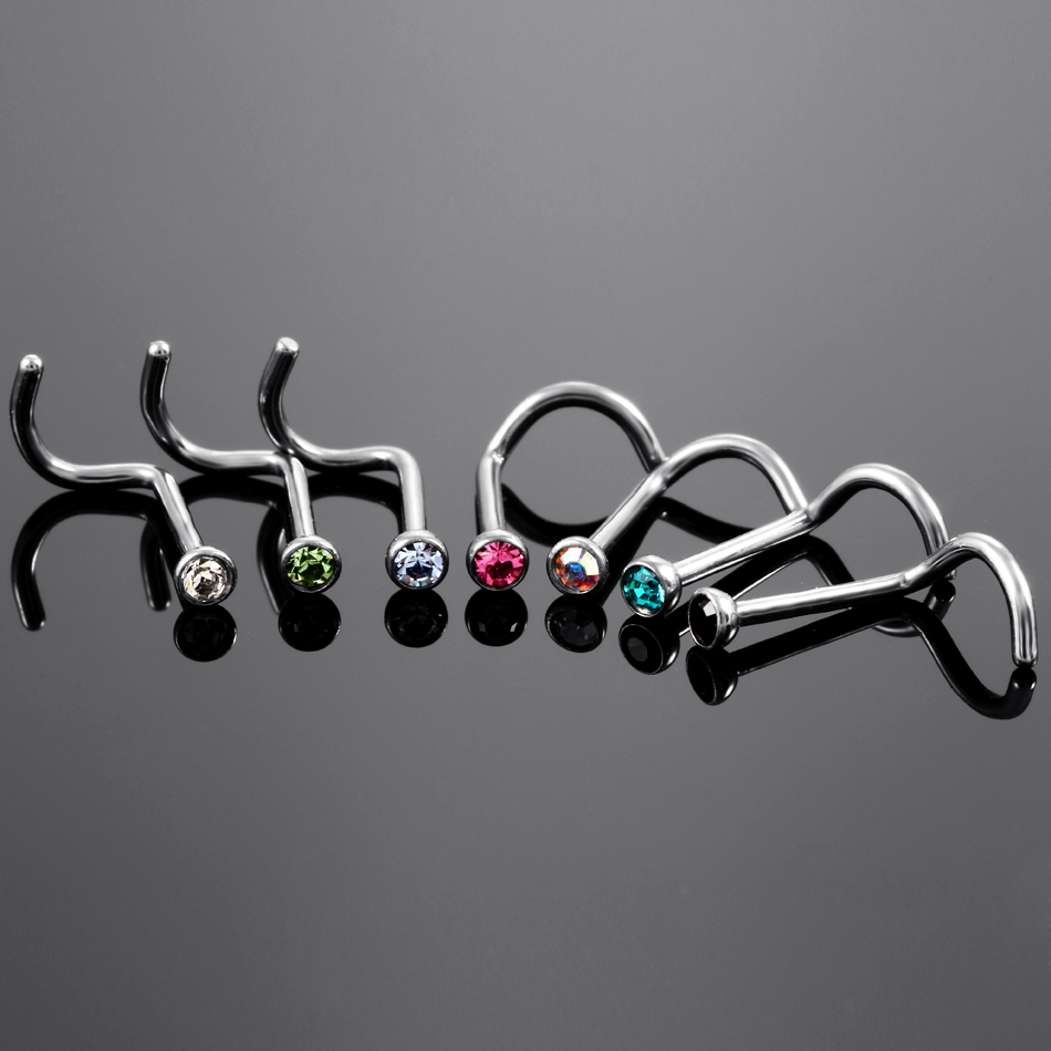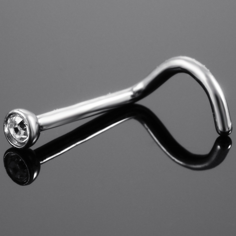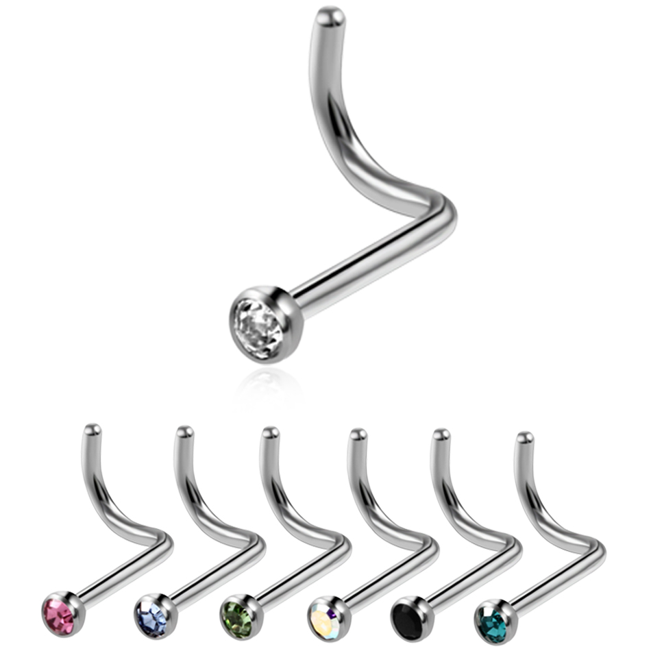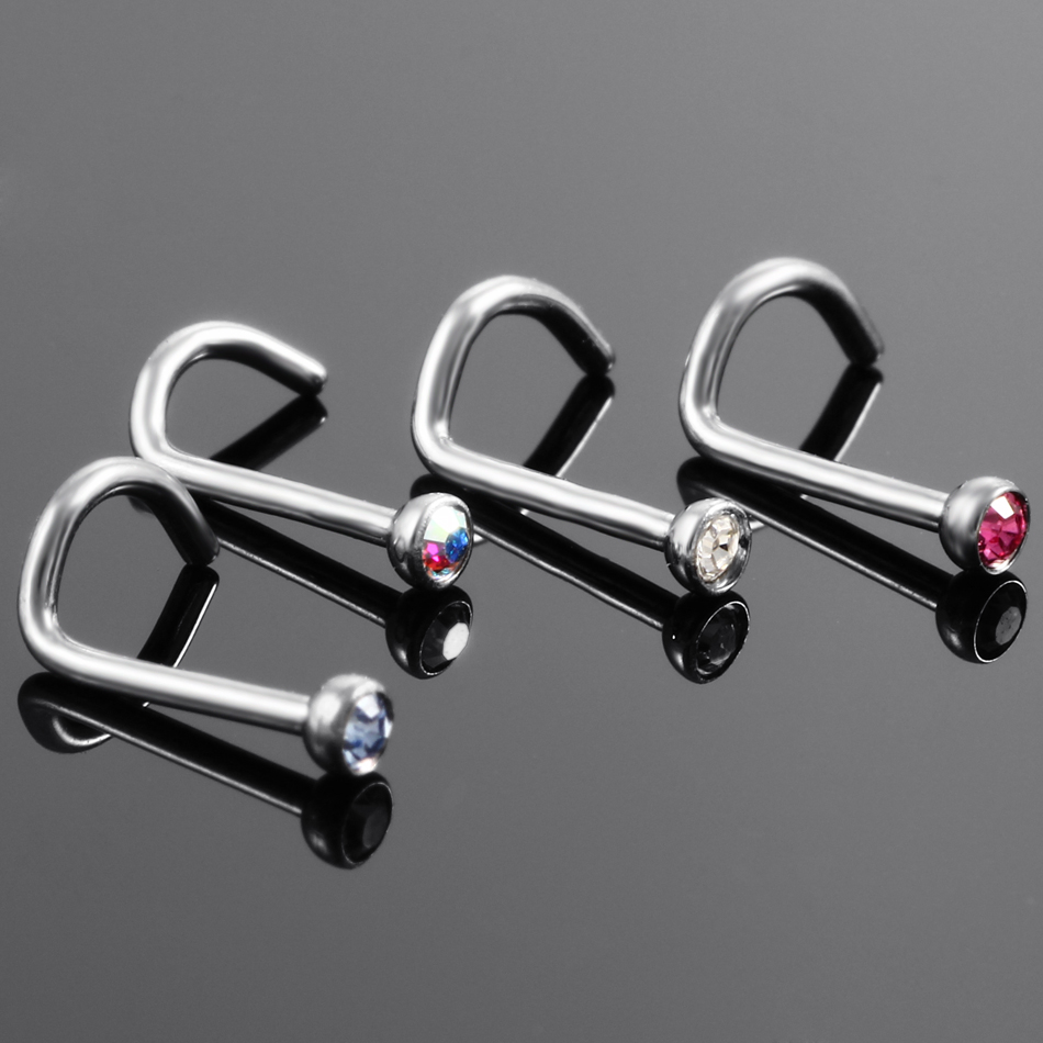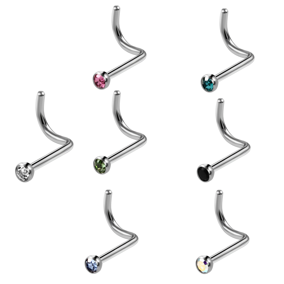 10Pcs/20Pcs/50Pcs G23 Titanium Nose Rings Studs Round Crystal Nose Rings Piercing Body Jewelry L-shape Nose Stud Zircon Nostril