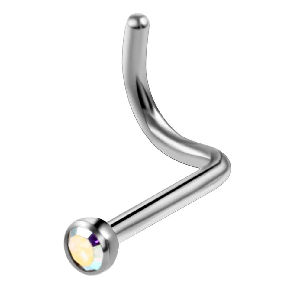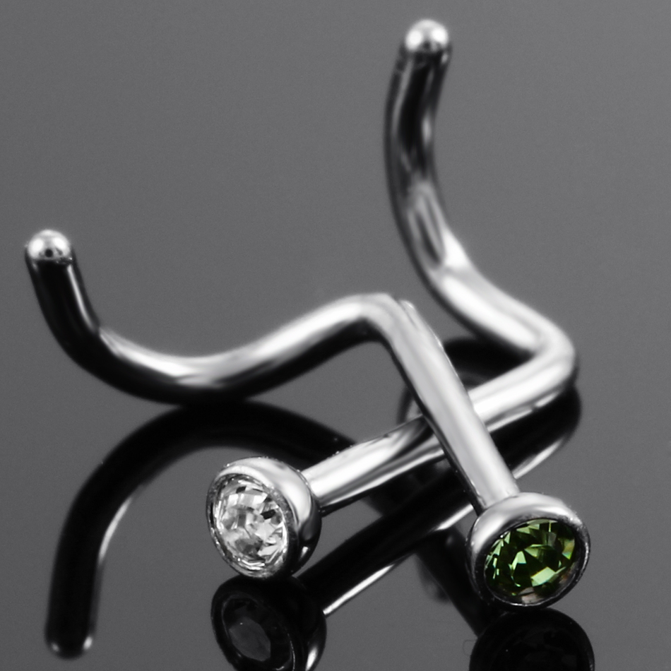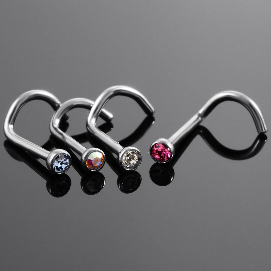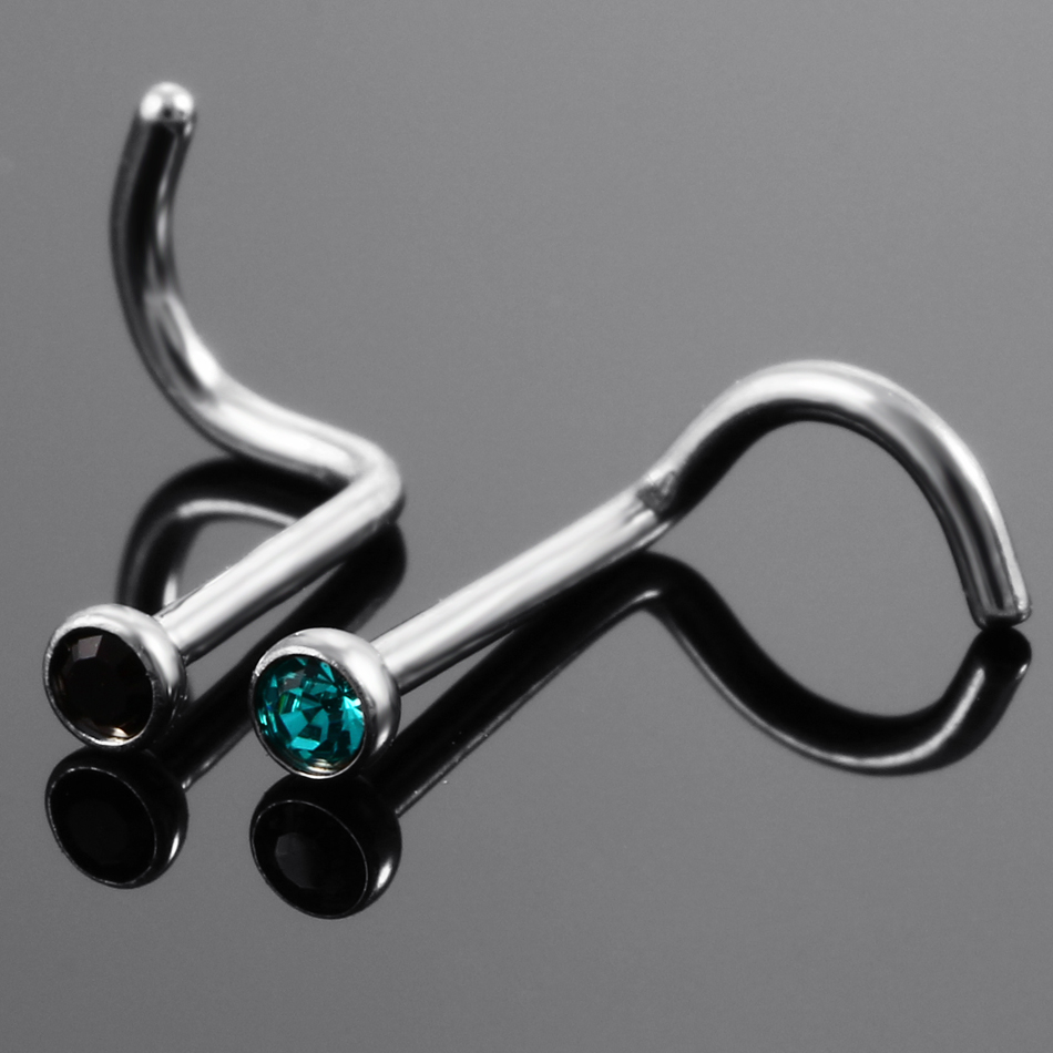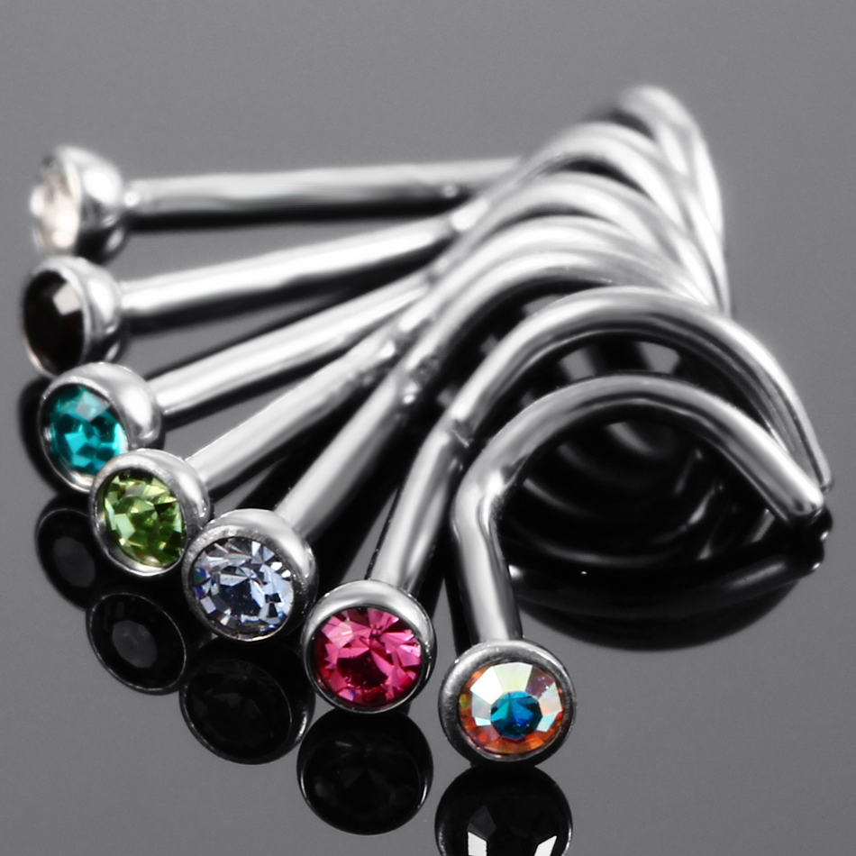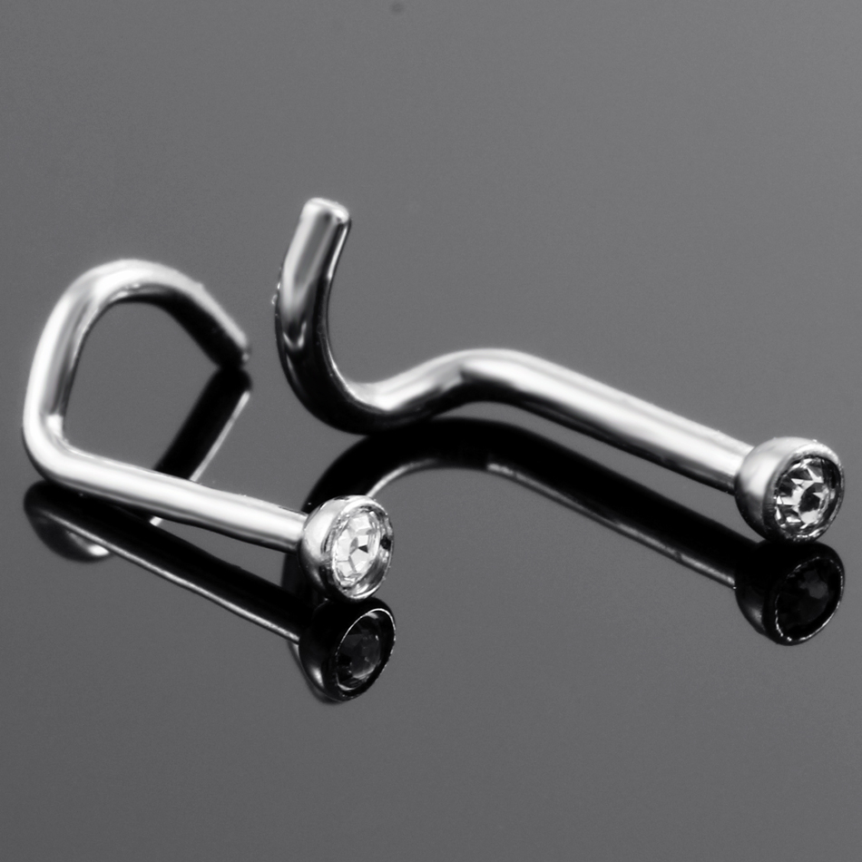 10Pcs/20Pcs/50Pcs G23 Titanium Nose Rings Studs Round Crystal Nose Rings Piercing Body Jewelry L-shape Nose Stud Zircon Nostril