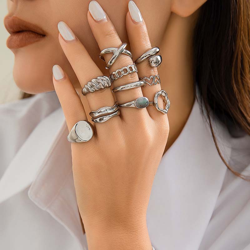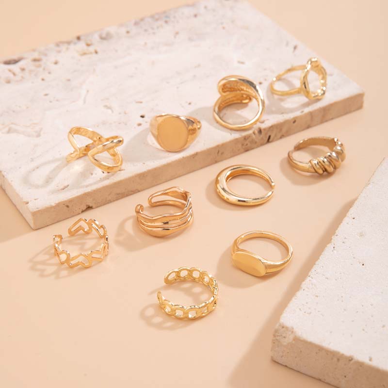 2 reviews for 10Pcs/Set Trendy Gold Color Geometric Cuff Rings Set for Women Fashion Metal Geometric Adjustable Finger Ring Jewelry 2025 New