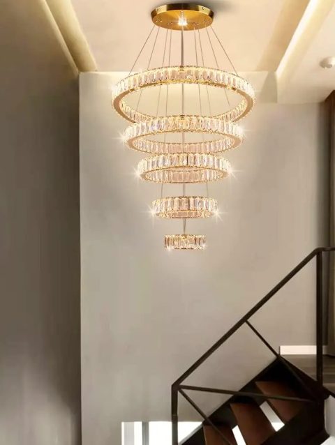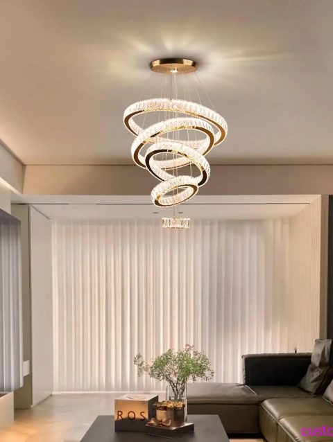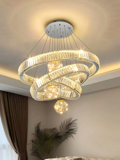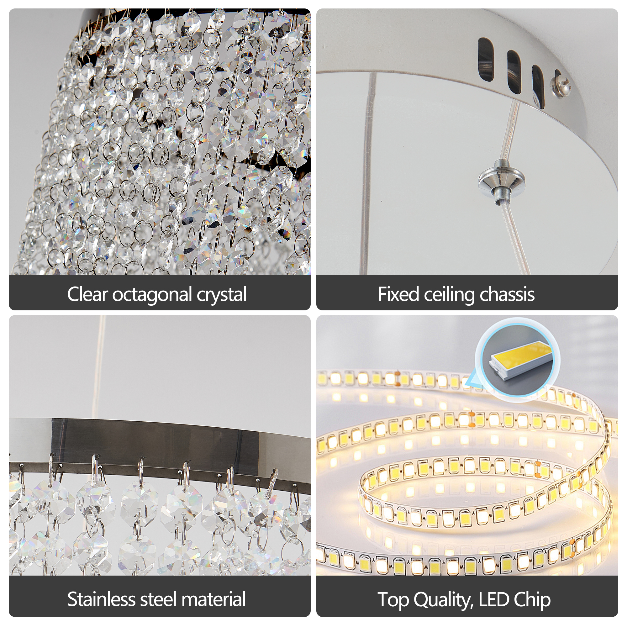 15.7inch luxury crystal led chandelier – dimmable – adjustable height and color temperature (3000k-6000k) – modern chandelier for living room, dining room and bedroom