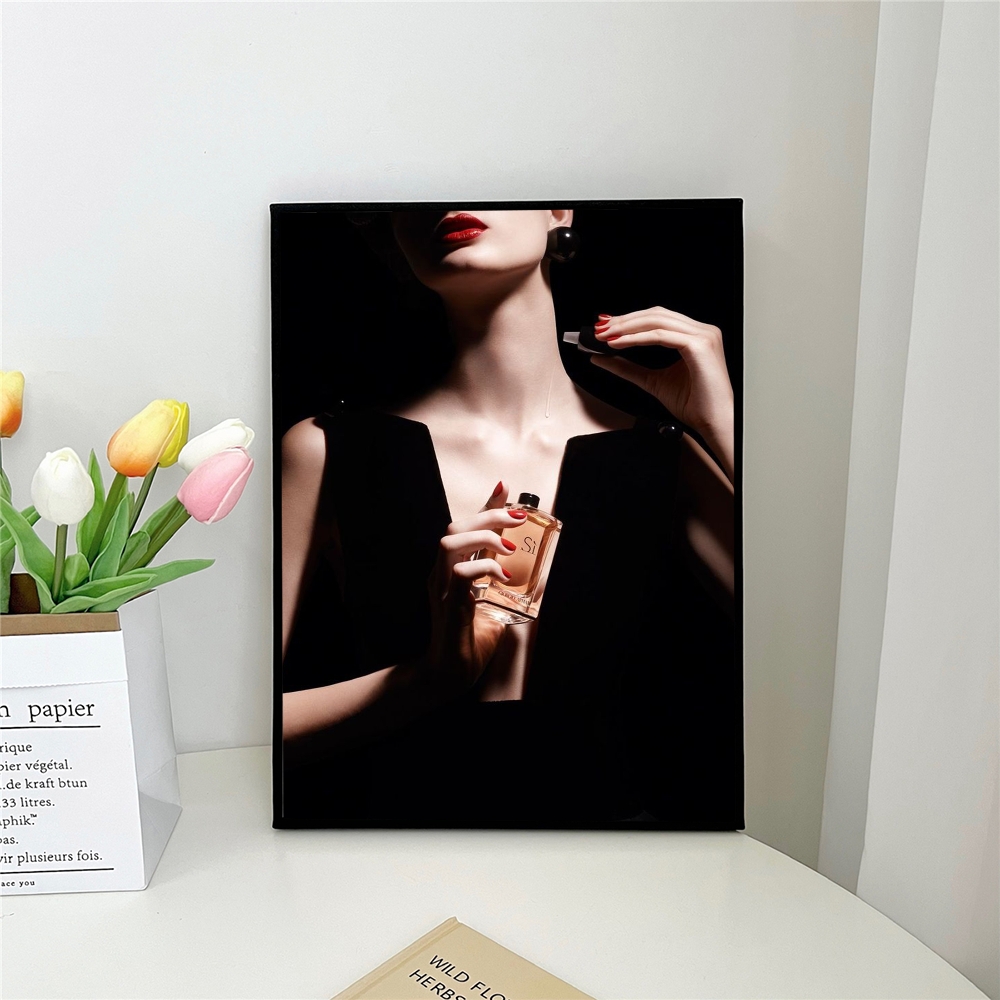 1pc Elegant Fashion Woman Poster Black And White Perfume Flowers Self-adhesive Art Poster Waterproof Paper Sticker Wall Decor