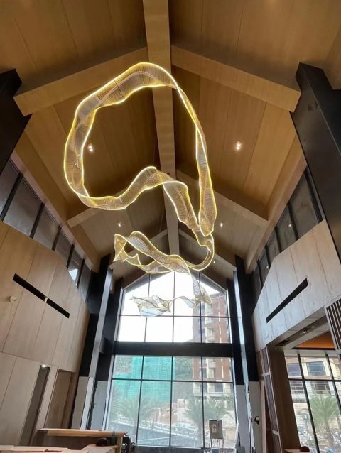 Hotel Living Room Hanging Led Chandelier Hotel Restaurant Large Led Chandelier Modern Pendant Light Glass Lights Luxury Lobby