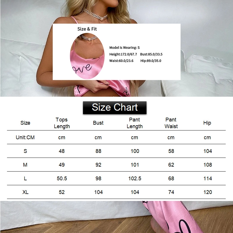 2 PCS Sexy Women Satin Pajamas Lingerie Sleepwear V Neck Sleeveless Suspenders and Pants Girl Pajamas Set Home Wear Loungewear