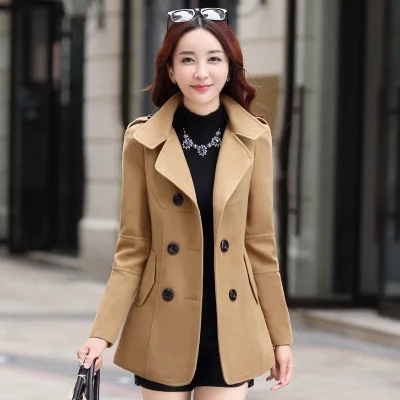 2017 Best Selling New Autumn/Winter Korean Style Slim Fit Woolen Jacket For Women Tweed Style Sweet Pattern Double Row Buttoning
