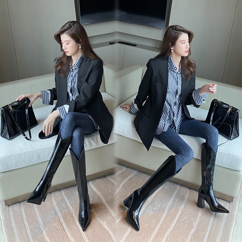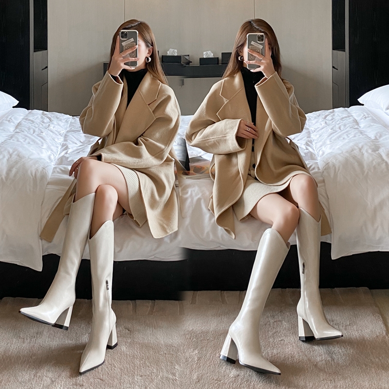 2021 New INS Women Beige High Heels Long Boots Lady Riding Boots Autumn Winter Designer Pointed Toe Knee-High Boots