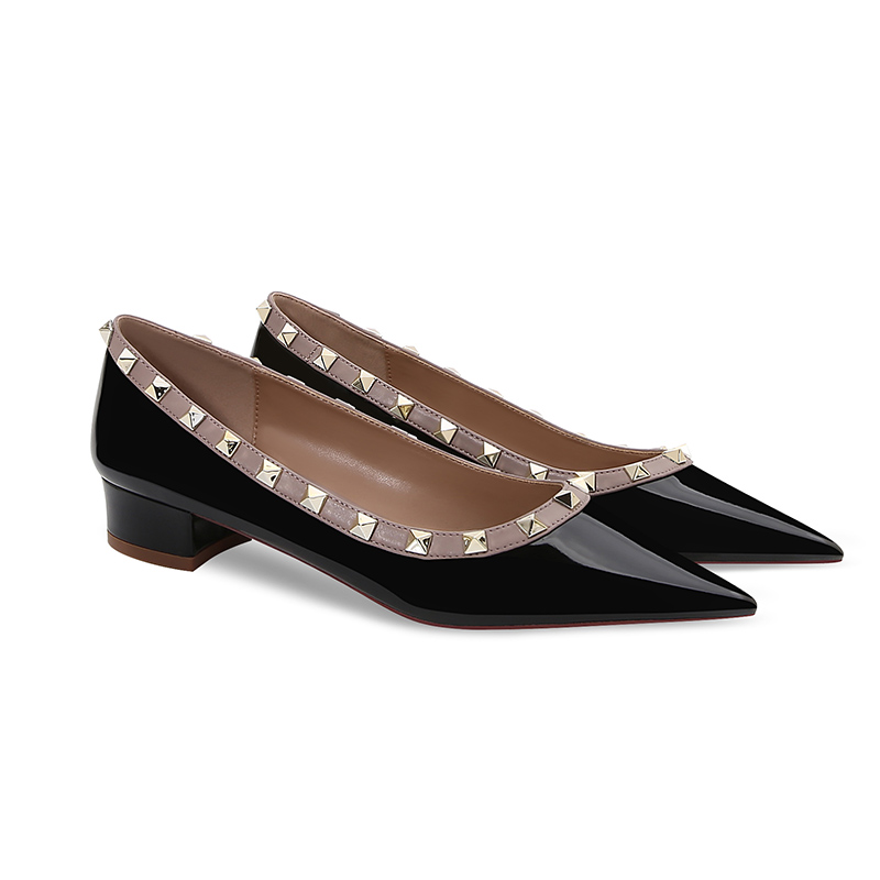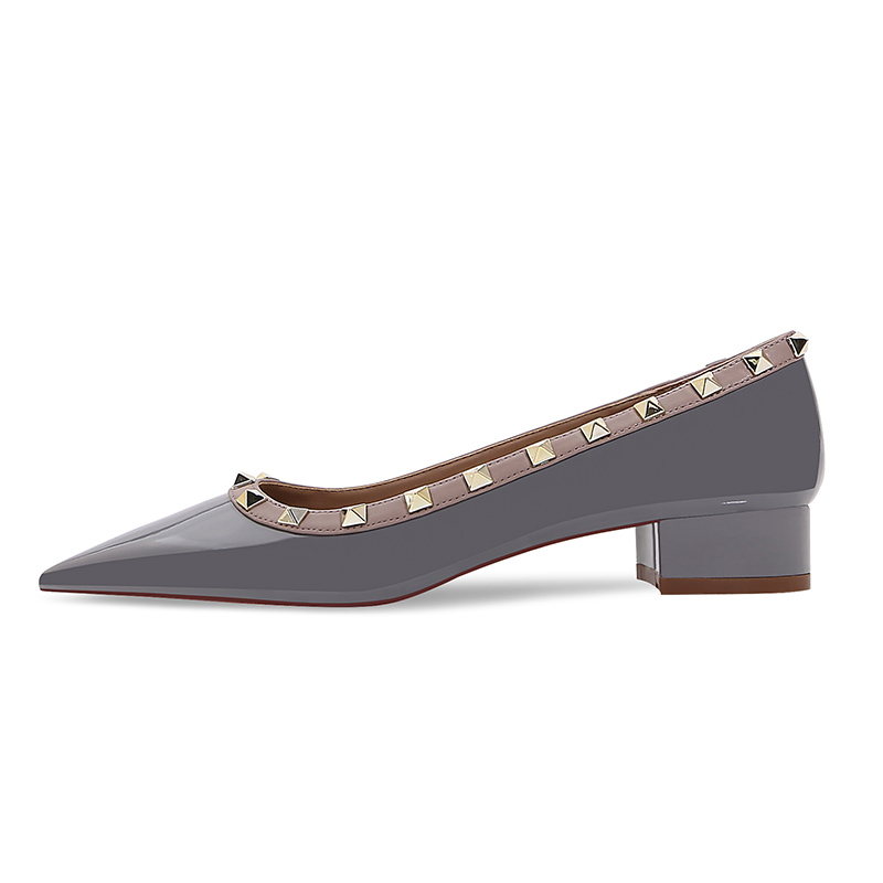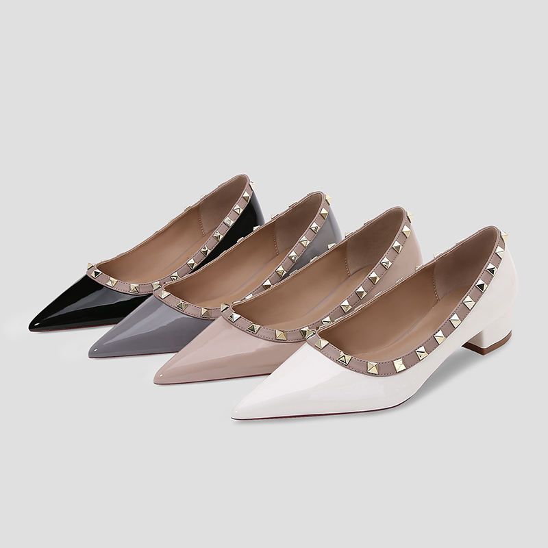 2022 New Summer Studded Block Heels 3CM Professional Work Nterview Formal Patent Leather Women’s Shoes