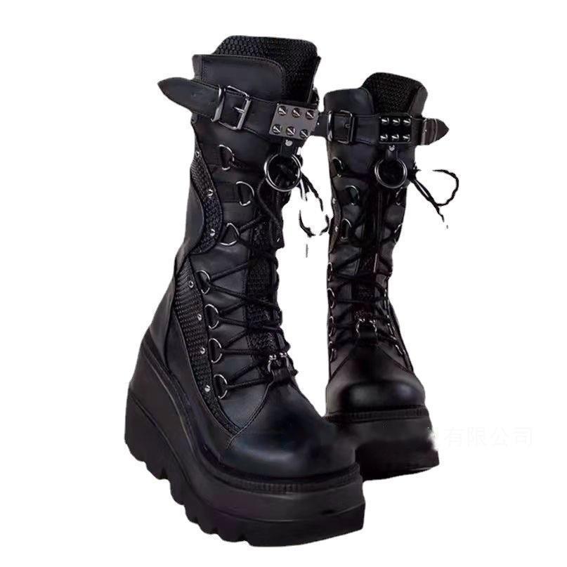 2023 New High Top Women Boots Rivet Punk Style Motorcycle Boots Platform Heels Fashion Half Boots Metal Decoration Casual Shoes