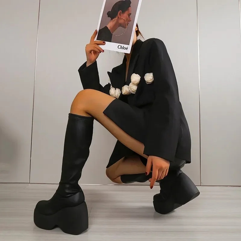 2 reviews for 2024 Brand New Gothic Style Sexy Elegant Chunky Platform Women Ankle Boots Big Size 43 Walking Comfy Woman Shoes Platform Shoes