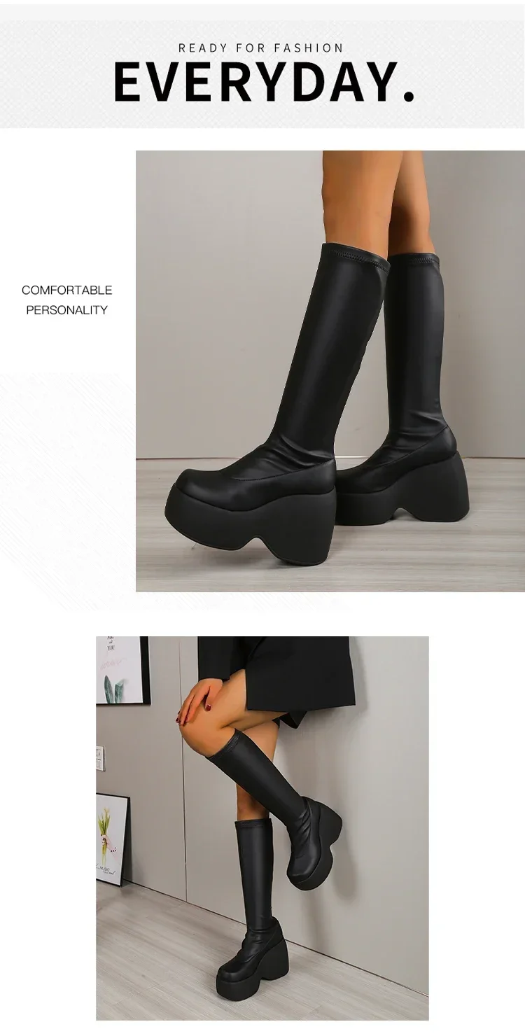 2024 Brand New Gothic Style Sexy Elegant Chunky Platform Women Ankle Boots Big Size 43 Walking Comfy Woman Shoes Platform Shoes