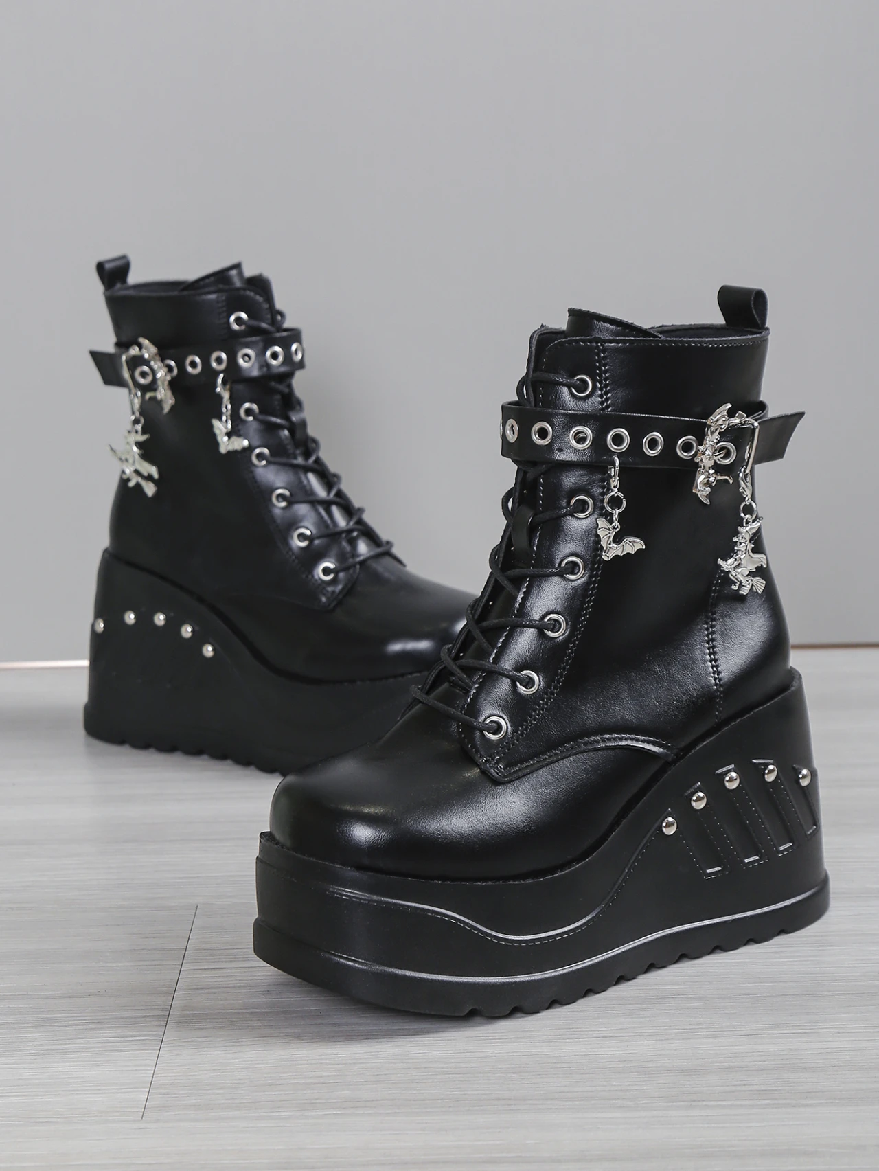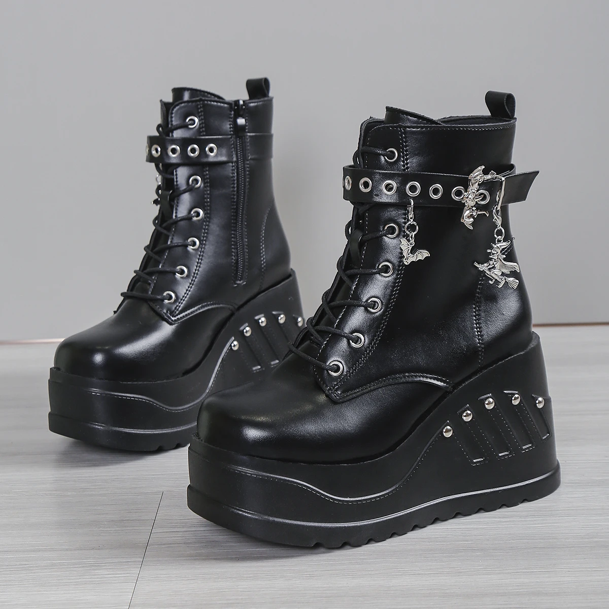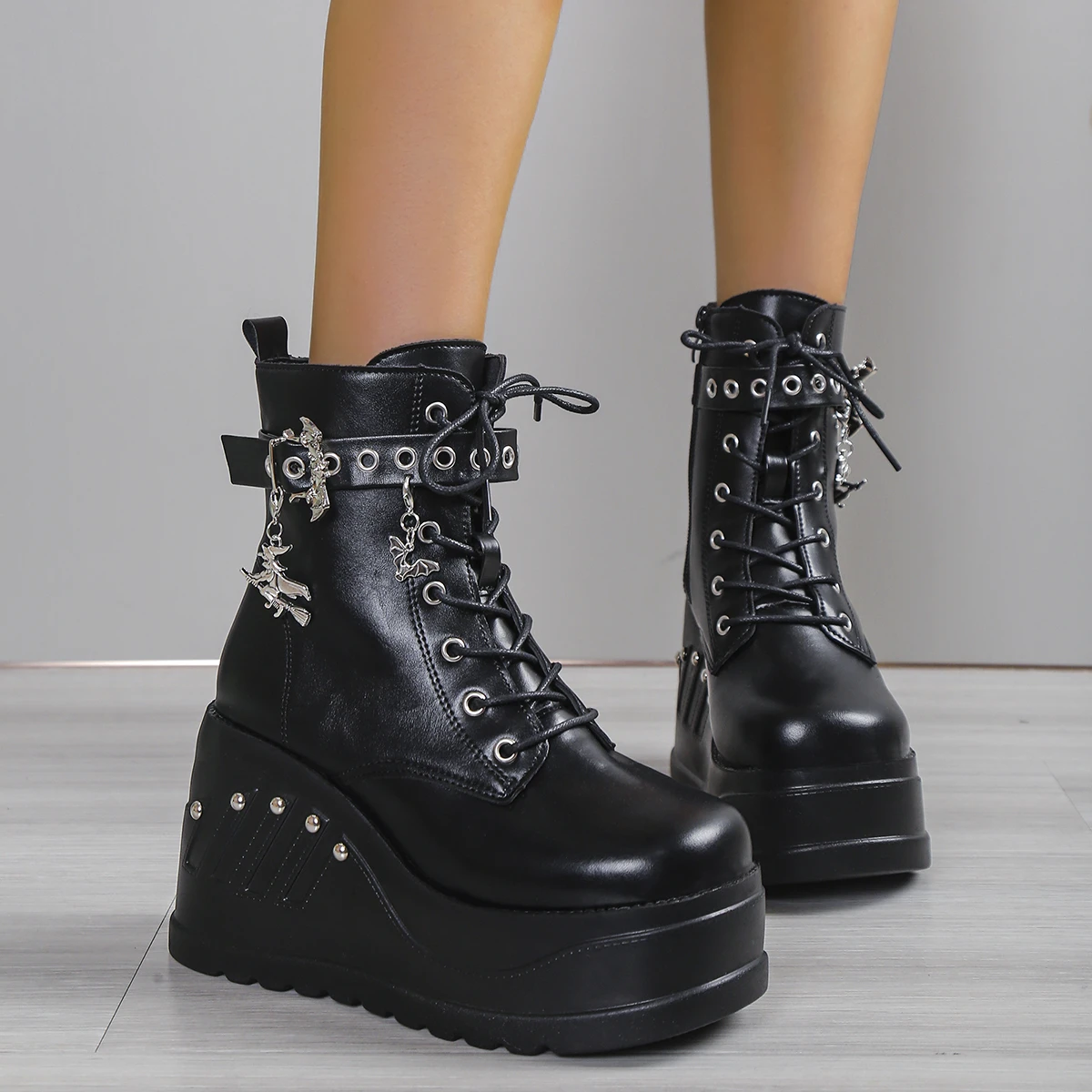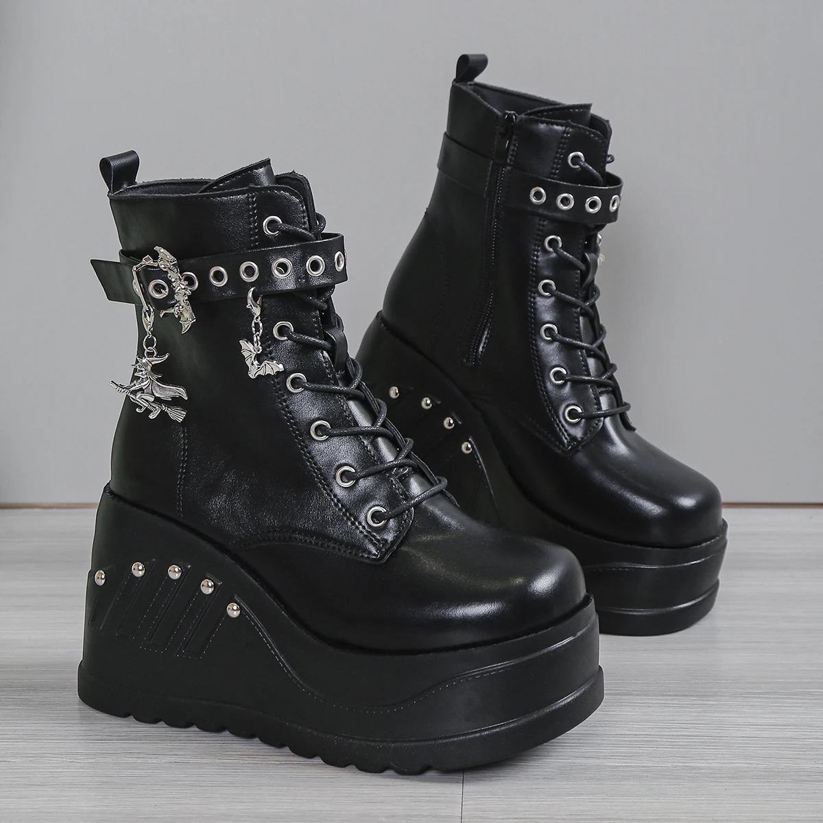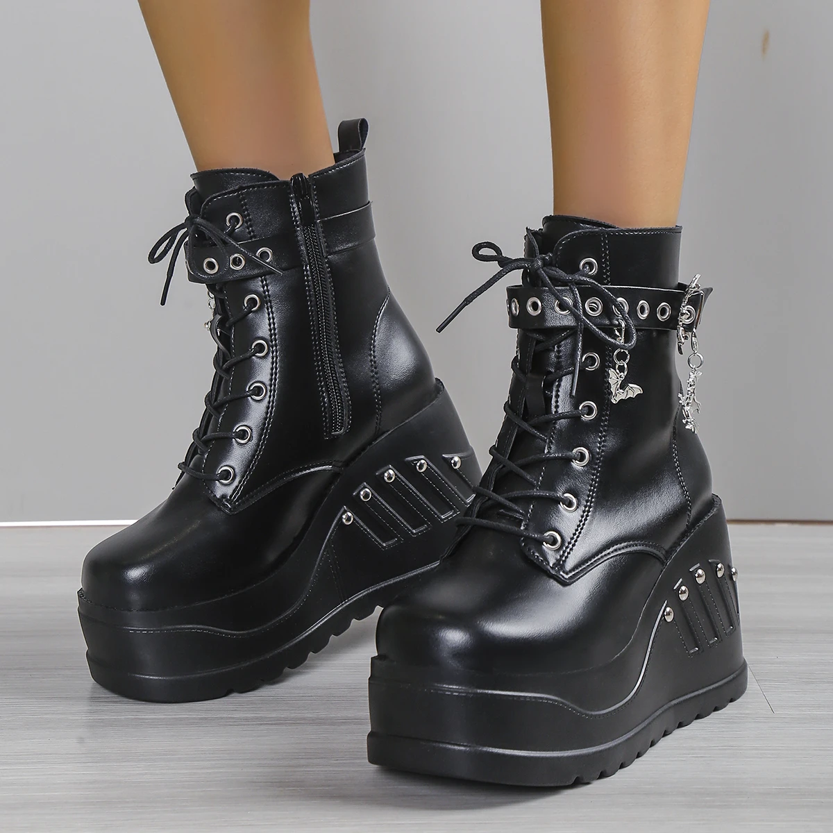 2024 New Boots for Women Fashion Hot Sale Punk Goth Platform Heels Wedge Women’s Boots Casual Goth Punk Size 43 Women’s Shoes