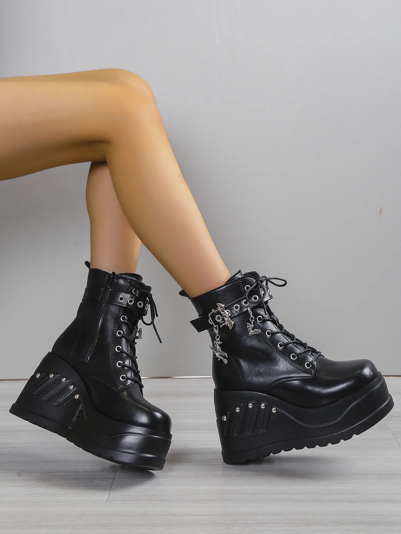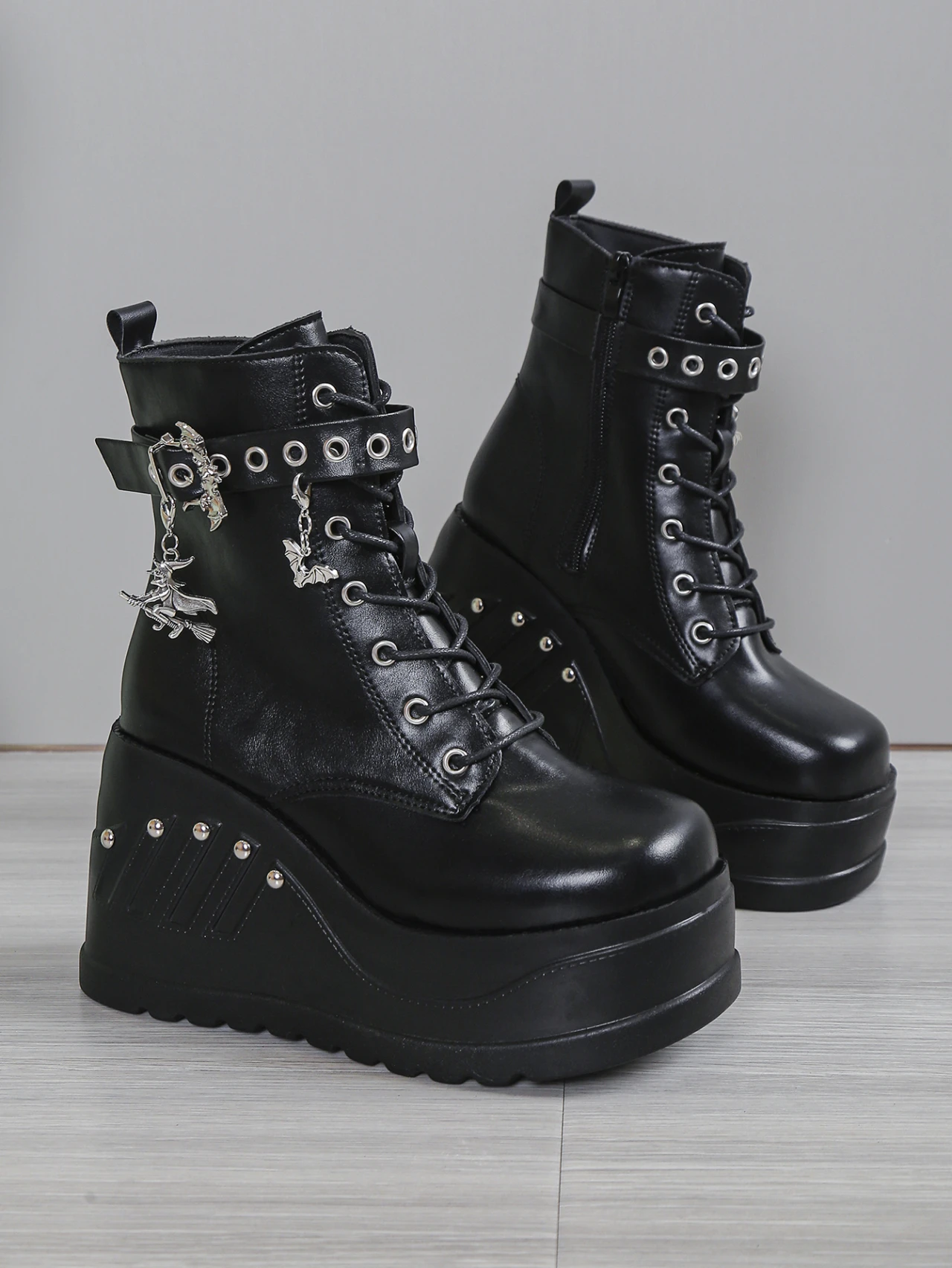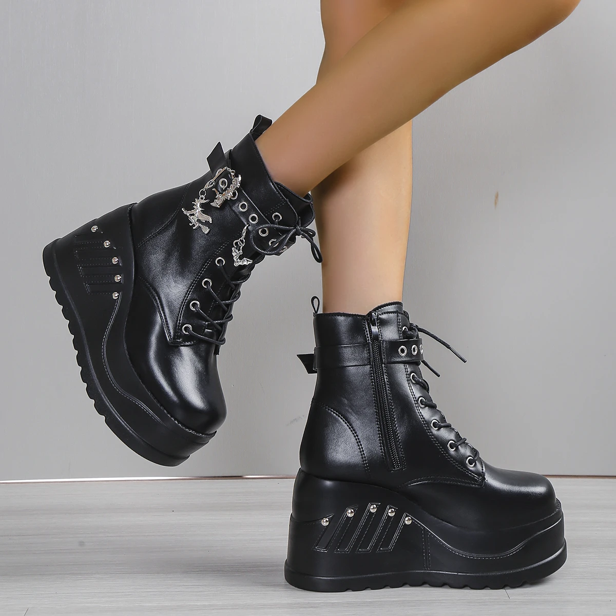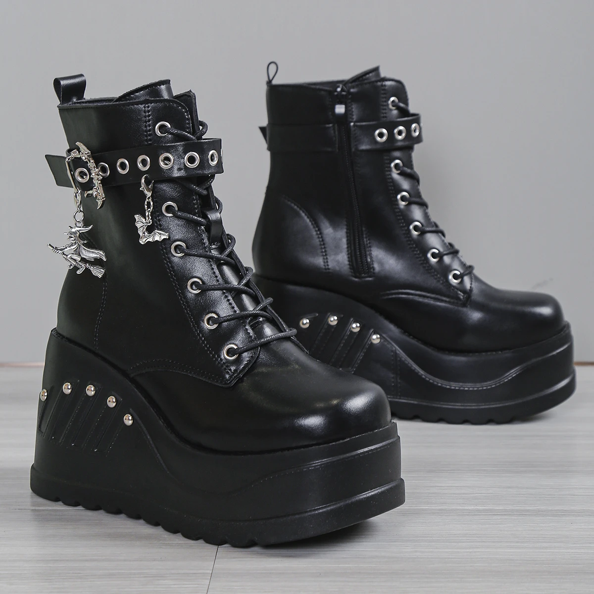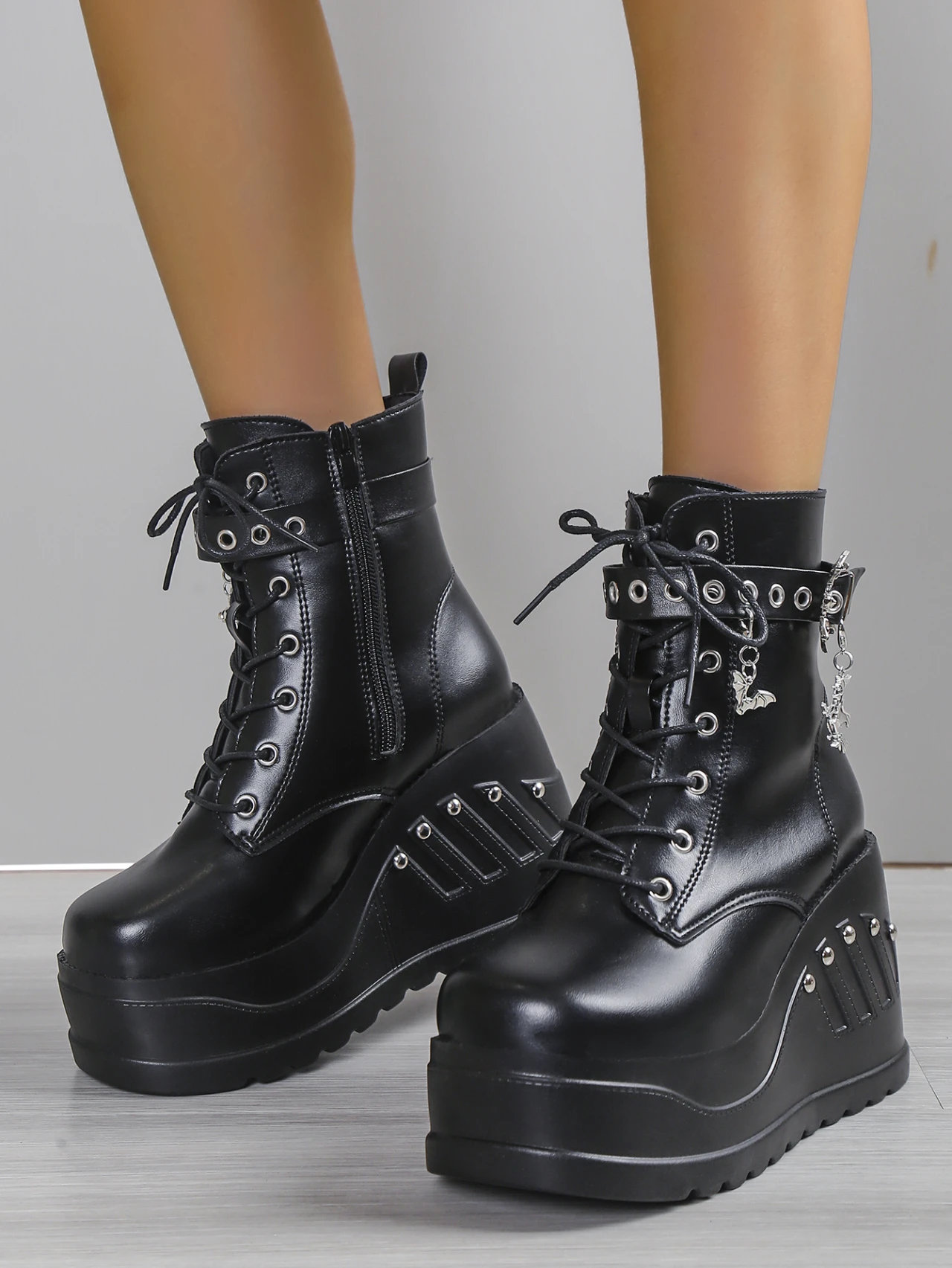 2024 New Boots for Women Fashion Hot Sale Punk Goth Platform Heels Wedge Women’s Boots Casual Goth Punk Size 43 Women’s Shoes