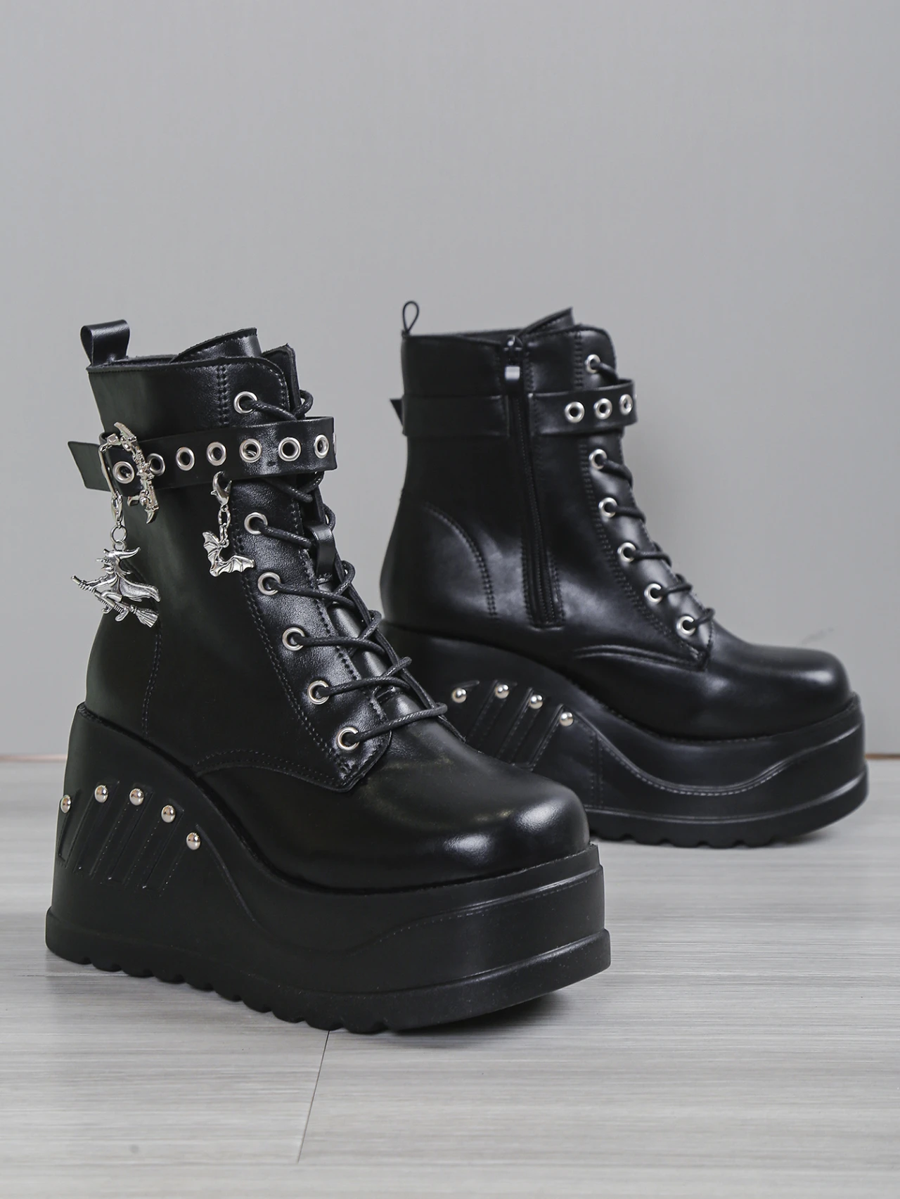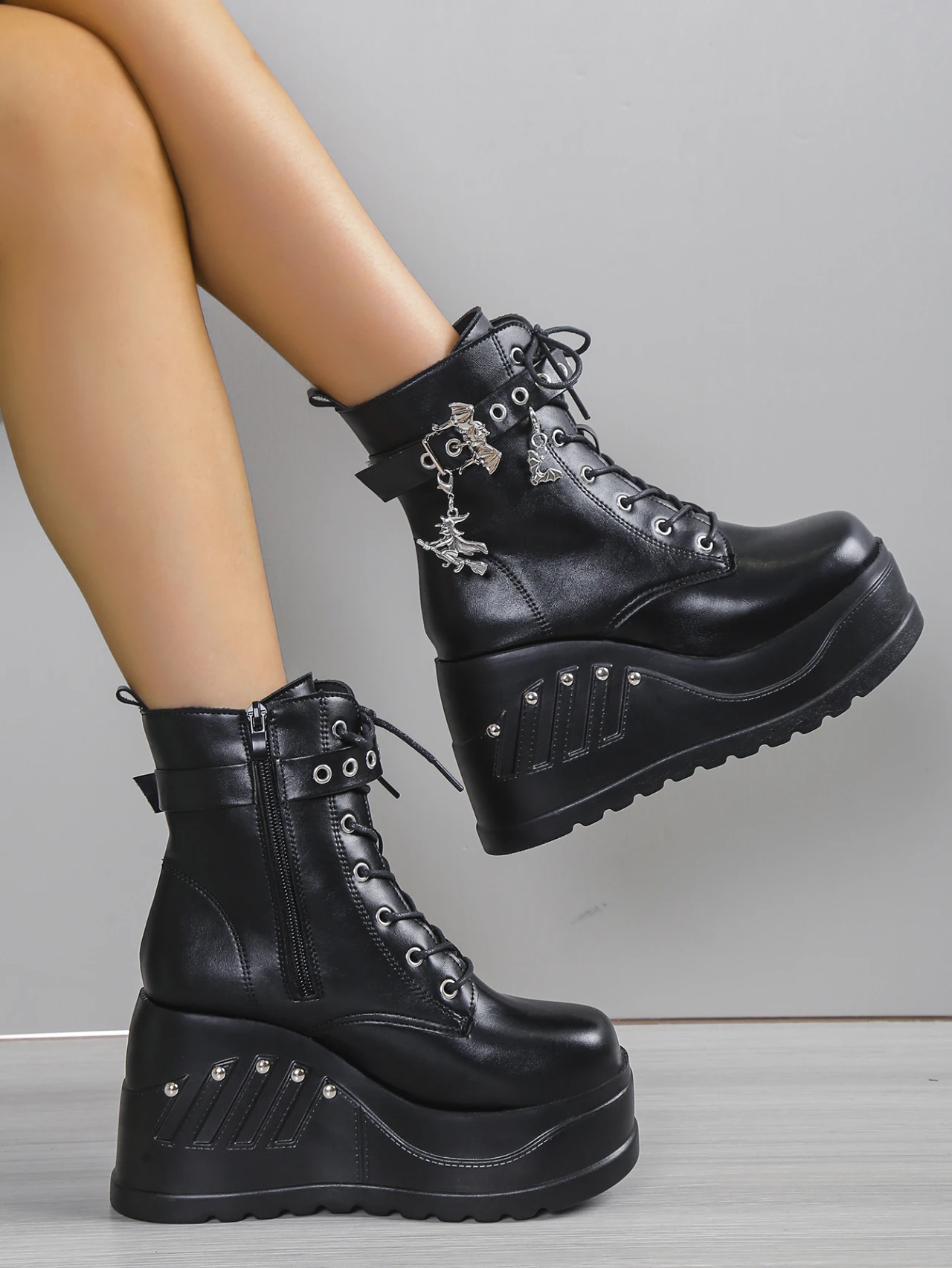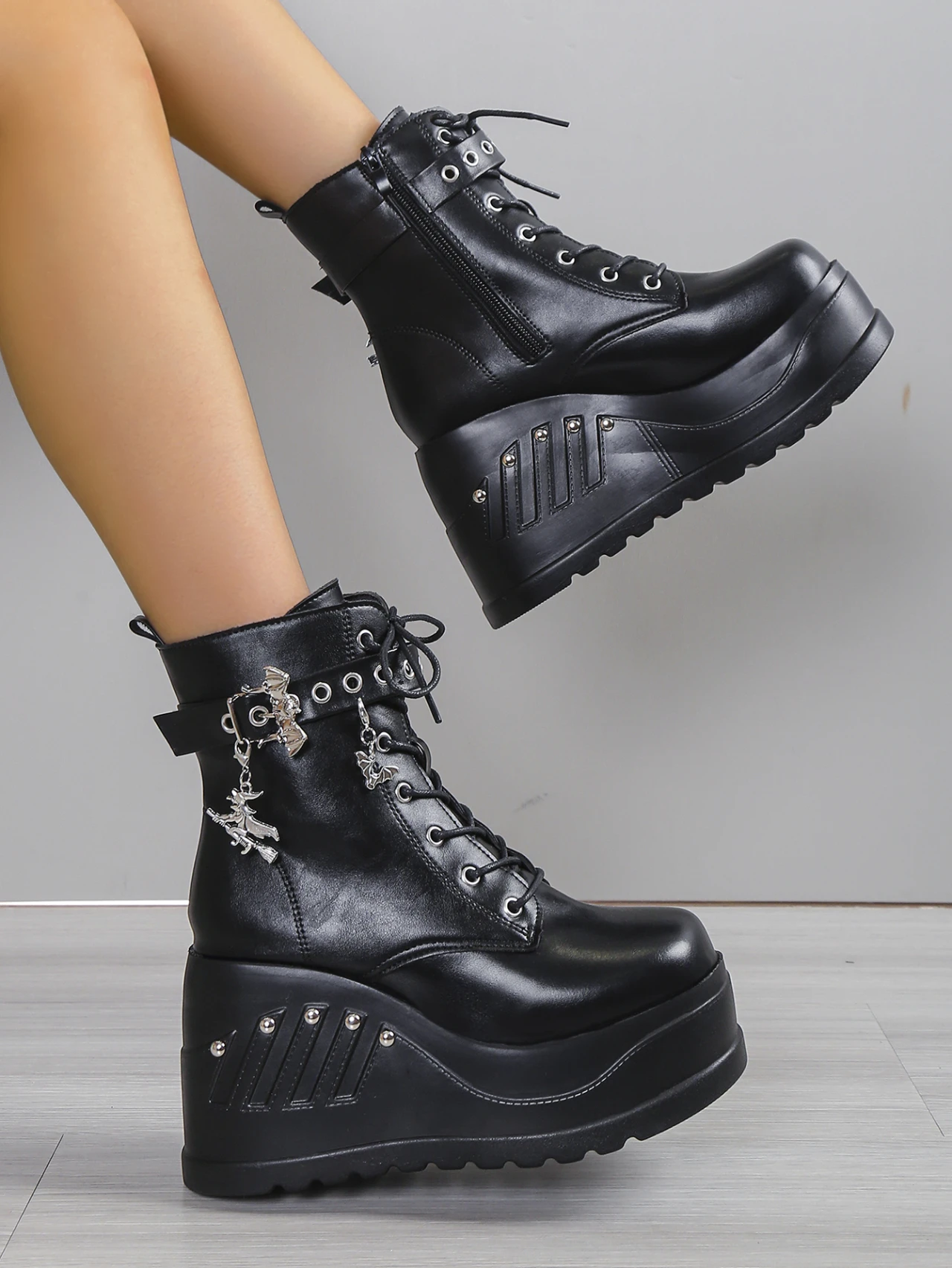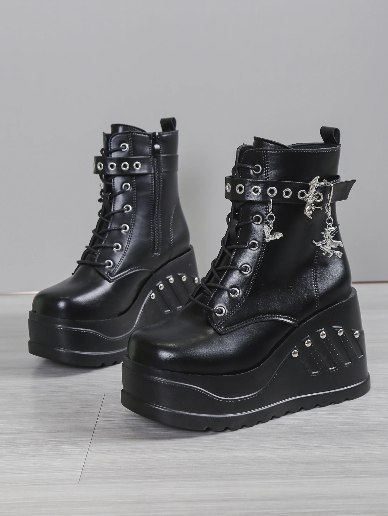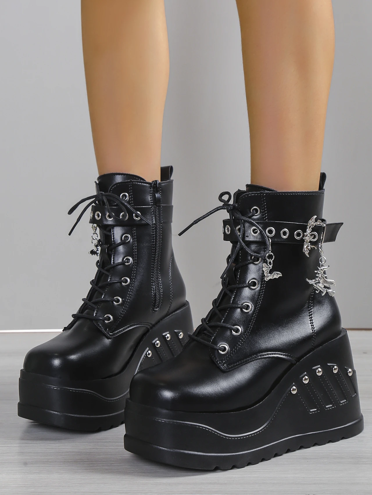 2024 New Boots for Women Fashion Hot Sale Punk Goth Platform Heels Wedge Women’s Boots Casual Goth Punk Size 43 Women’s Shoes