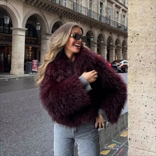 KONDALA 2025 Fall Winter Women Burgundy Casual Faux Fur Jackets Fashion Streetwear Turn Down Collar Warm Oversized Thick Coats