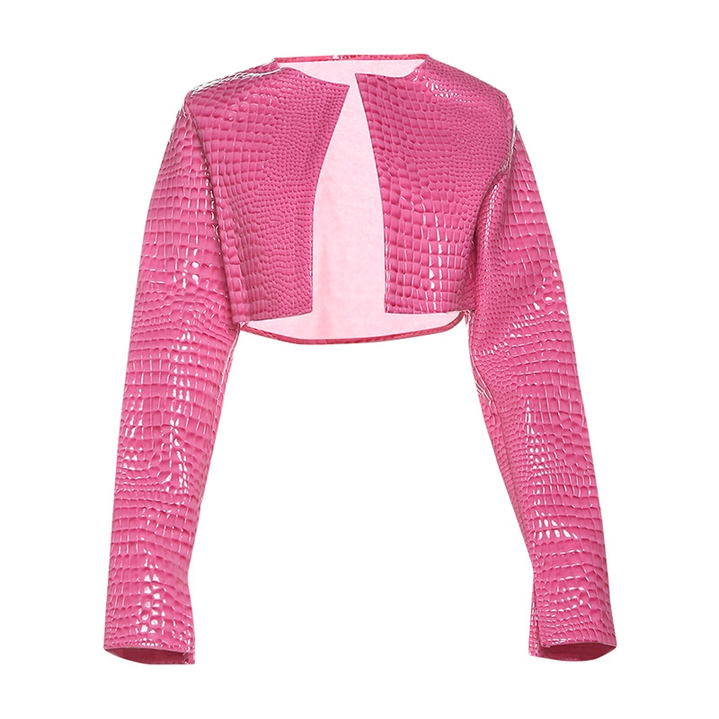 2024 new Faux Leather Crop Jacket Women Hipster Autumn Trend Snake Print O-Neck Full Sleeve Streetwear Wild Basic Outwear Coat