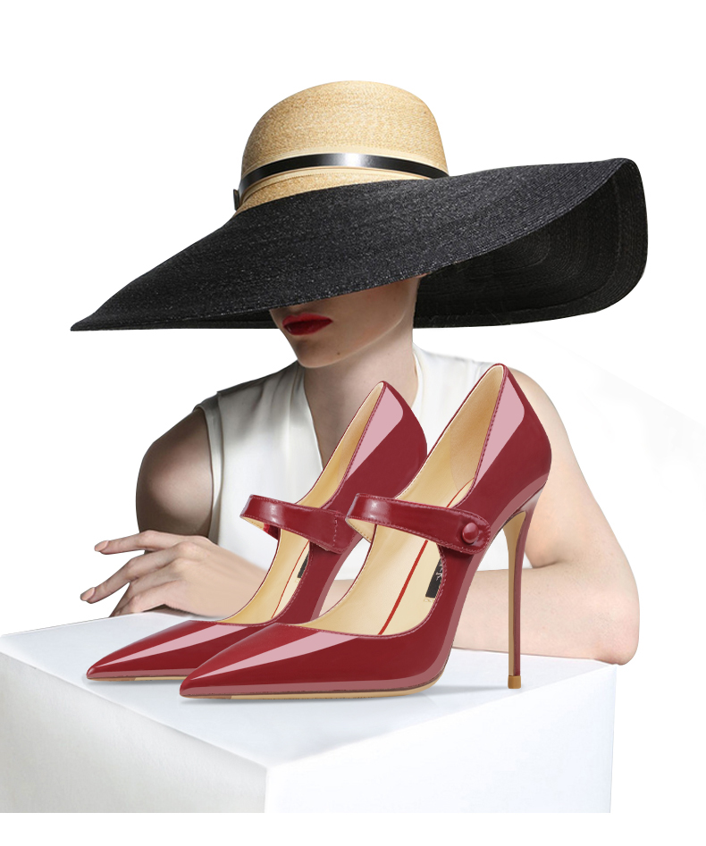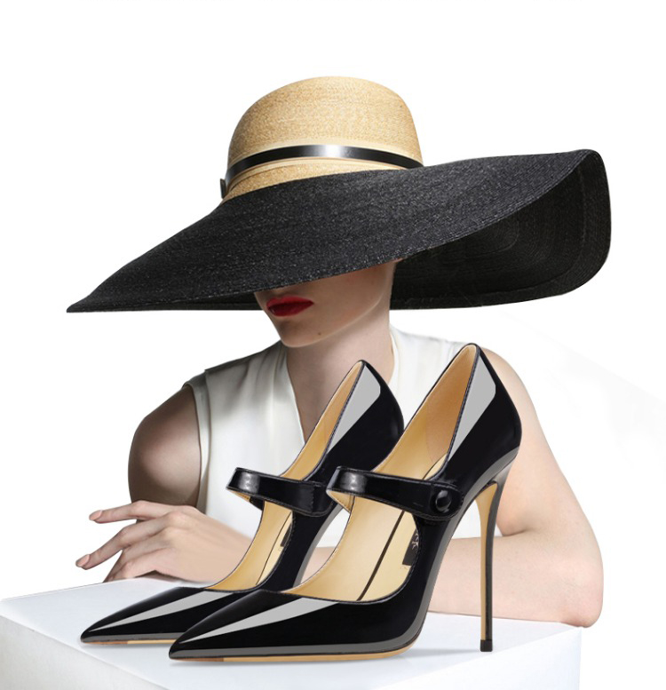 2024 New Style Pointed Toe European And American Mary Jane Shoes One-Word Buckle Women’s Shoes Ultra-Thin High Heels 12 Cm Pumps