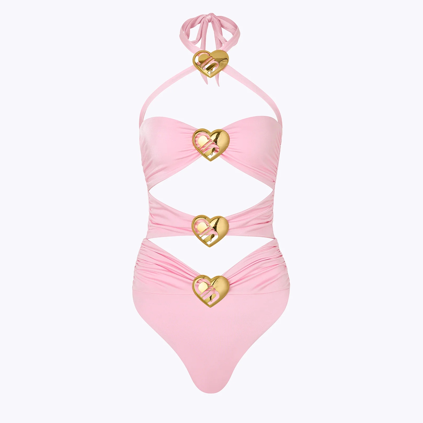 2024 Sexy Heart Cut out One Piece Swimsuit and Skirt Swimwear Women Bodysuit Monokini High Leg Swim Suit Bathing Suit Beachwear
