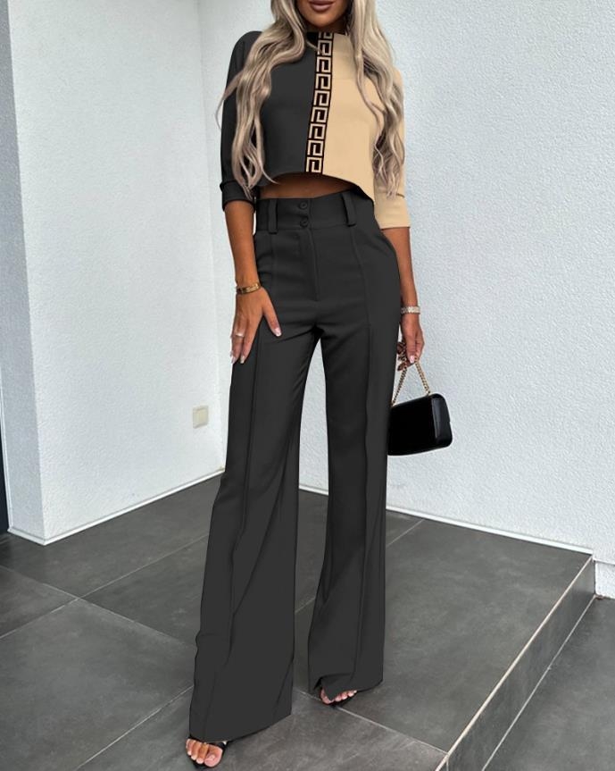 2024 Spring and Autumn New Fashion Small High Neck Slim Fit Women’s Set Solid Pocket Micro Horn Pants Set for office lady