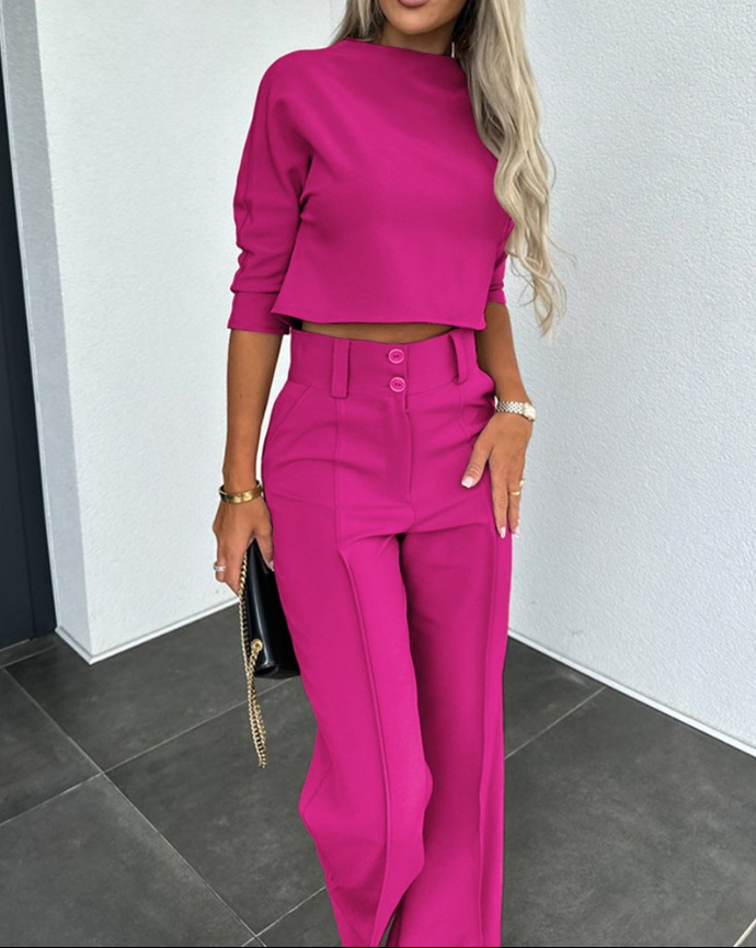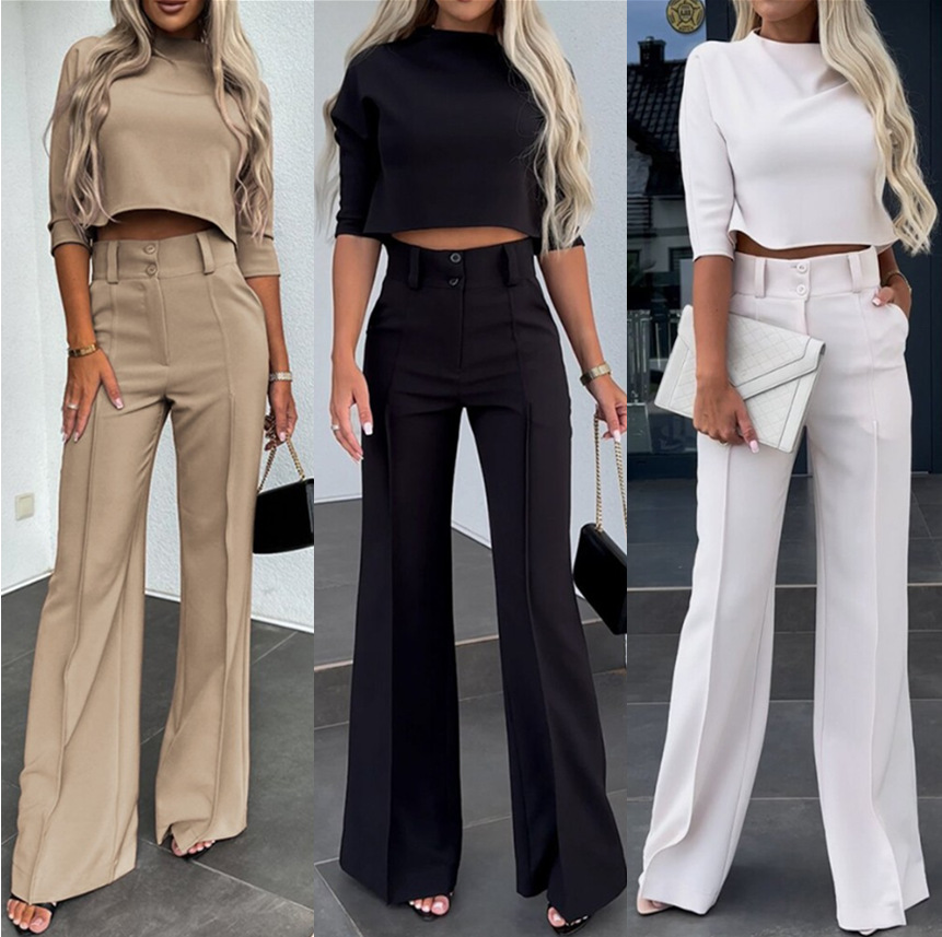 Be the first to review “2024 Spring and Autumn New Fashion Small High Neck Slim Fit Women’s Set Solid Pocket Micro Horn Pants Set for office lady” Cancel reply