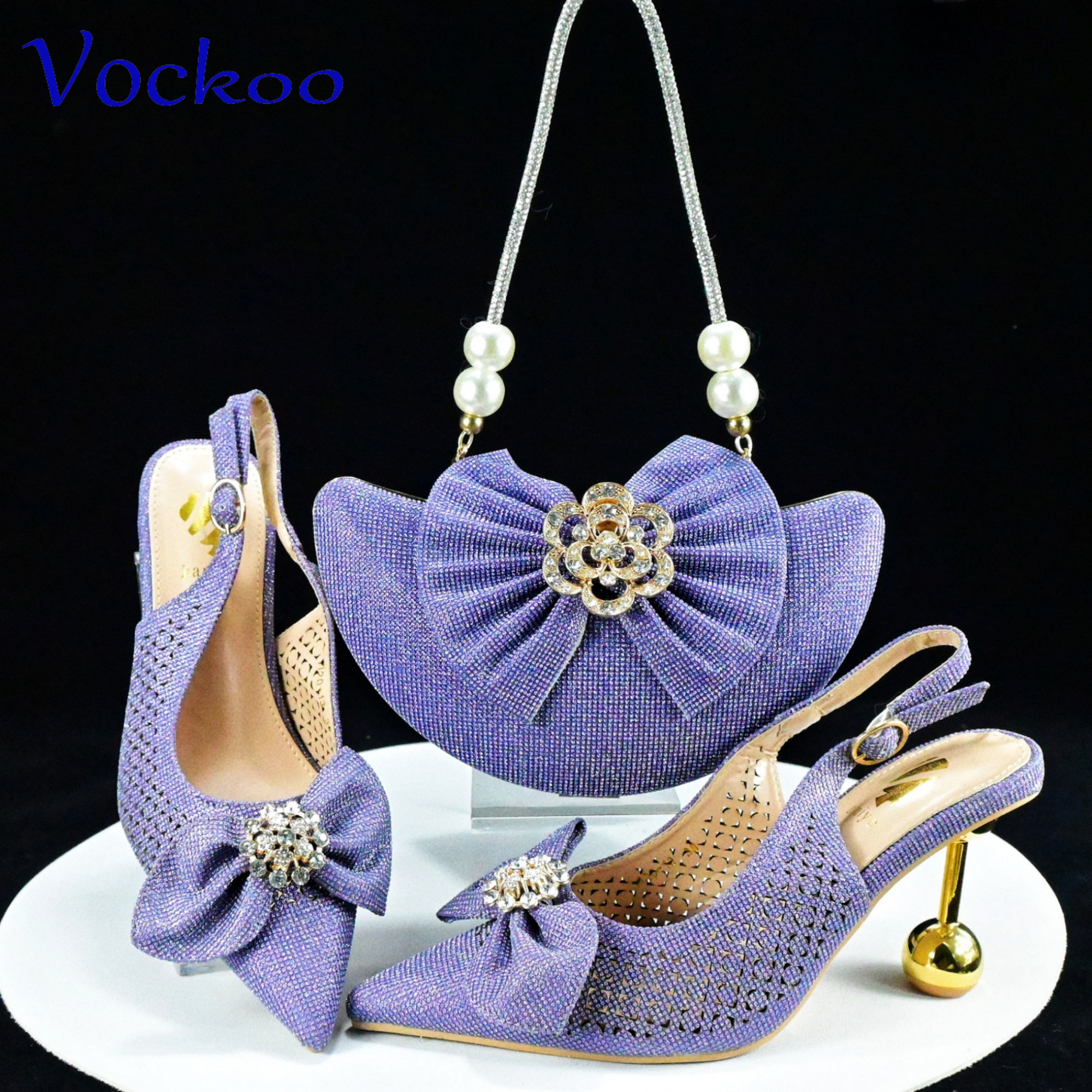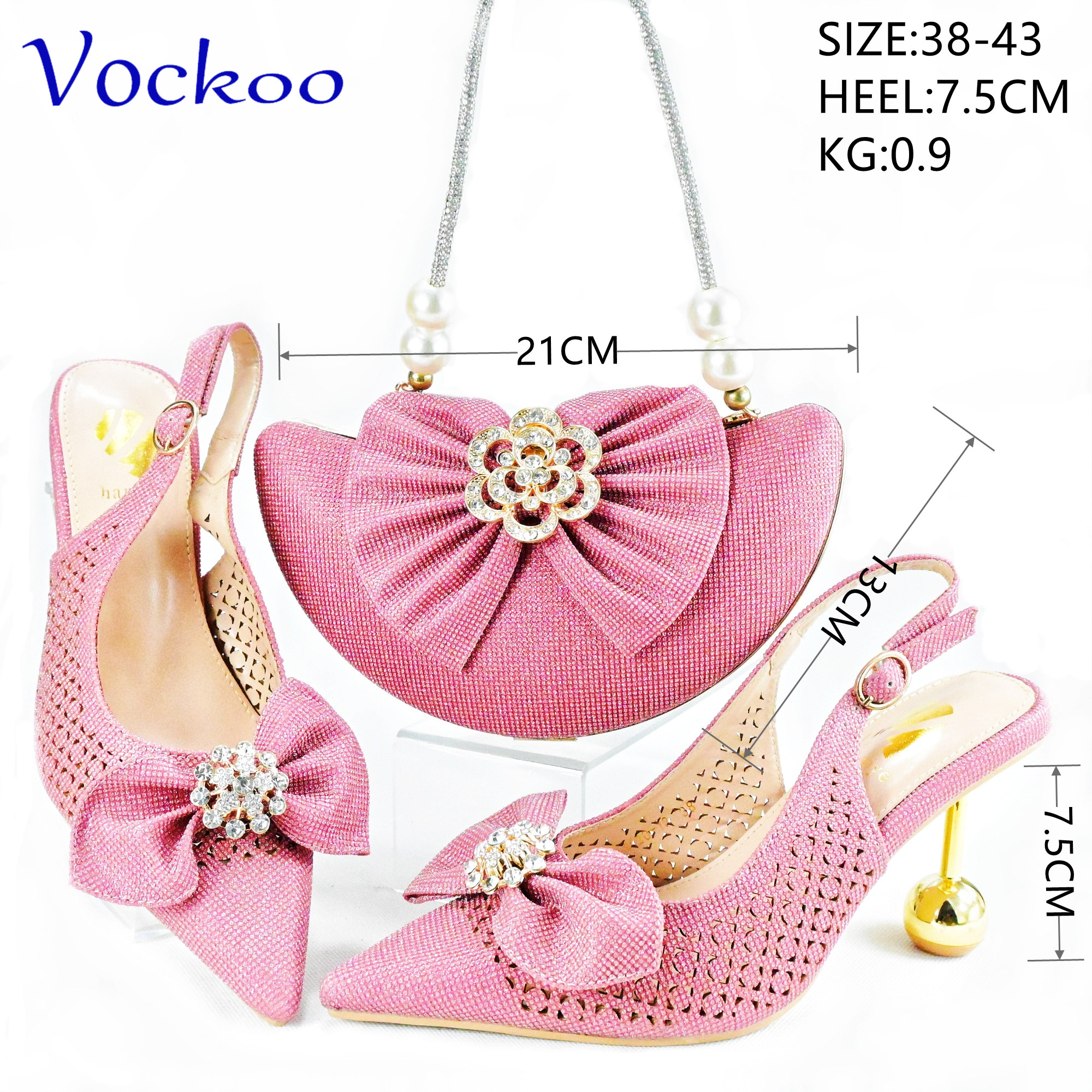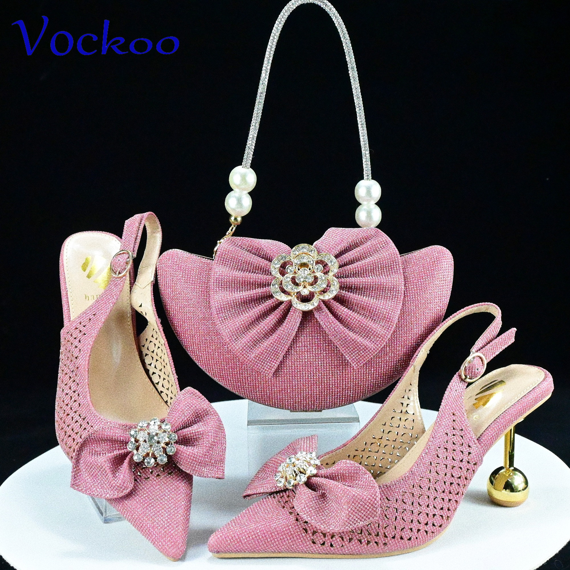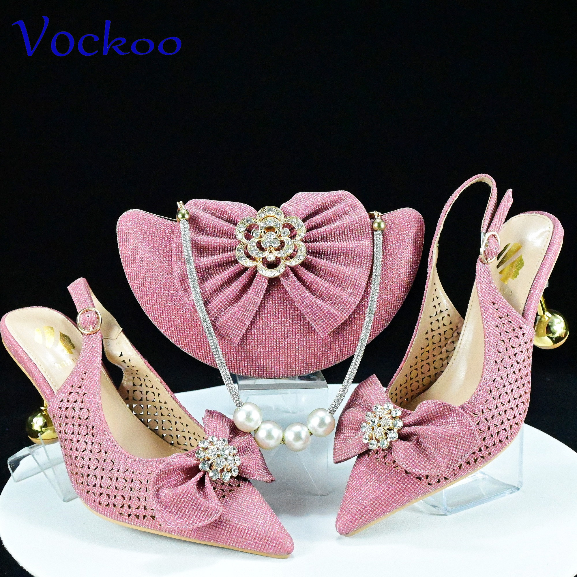 2024 Super High Heels New Arrivals Italian Women Shoes and Bag Set in Pink Color Pointed Toe with Appliques For Dress