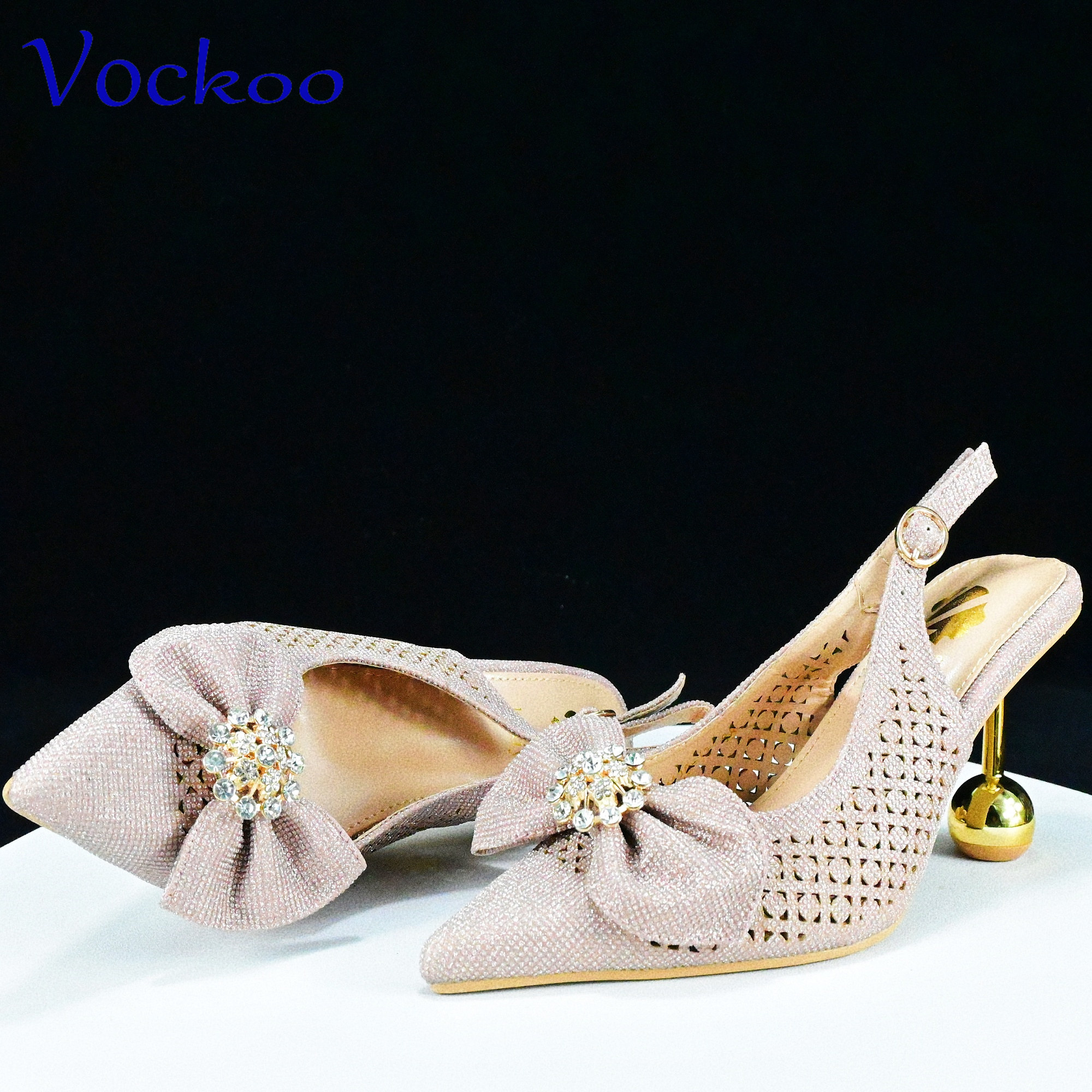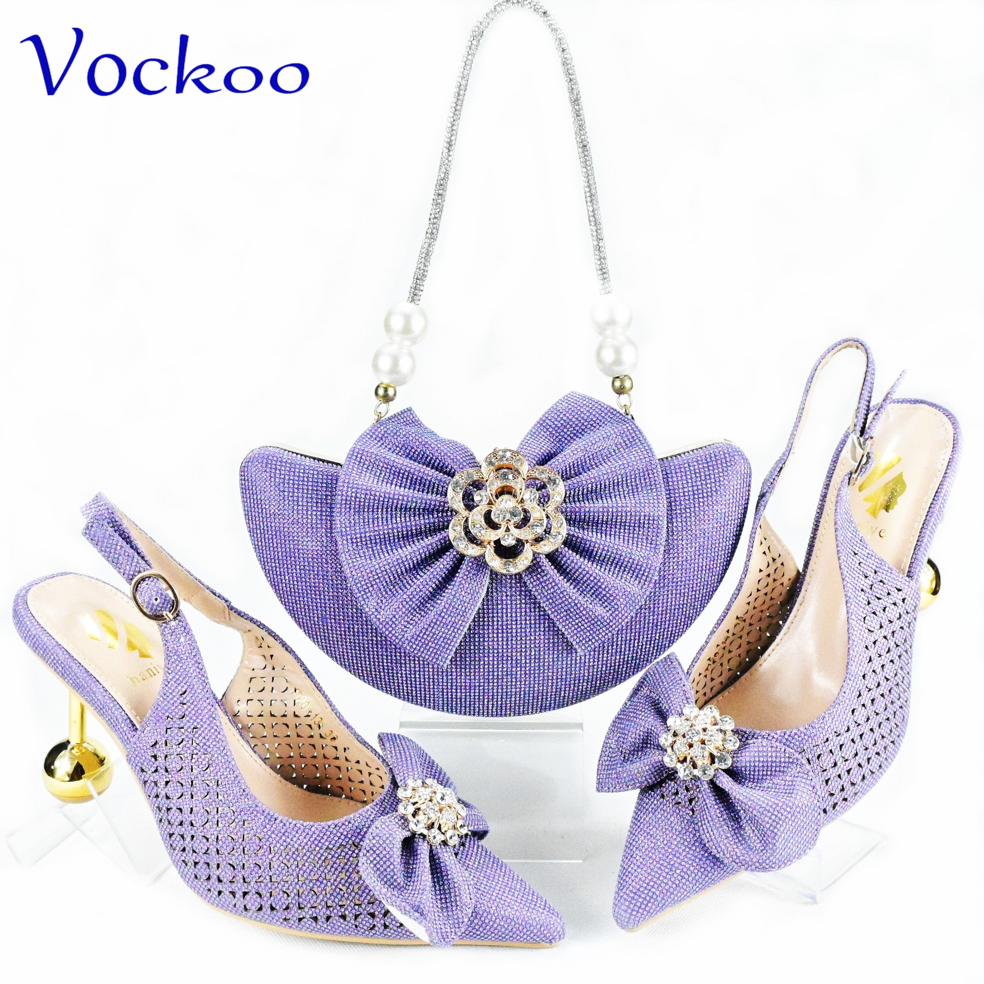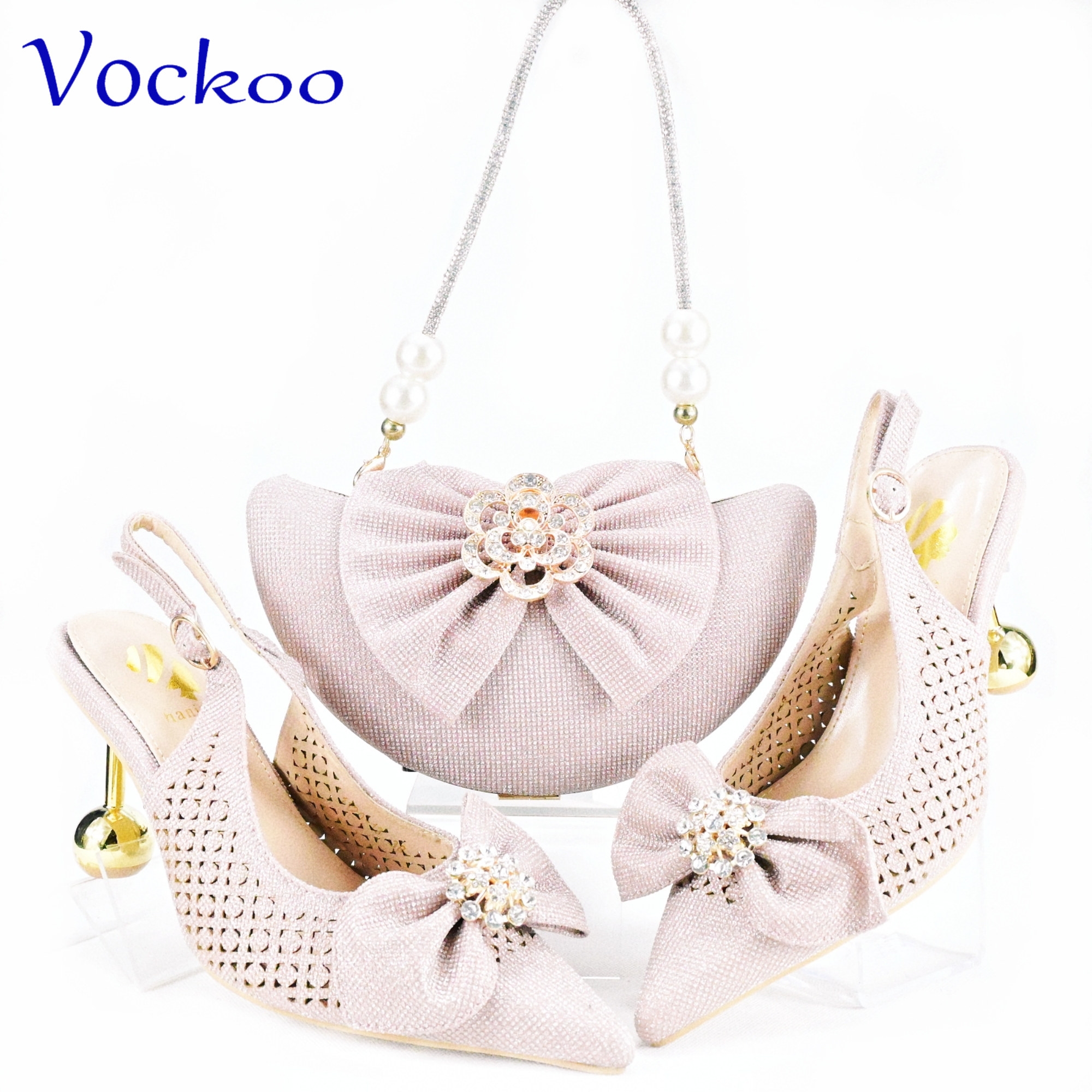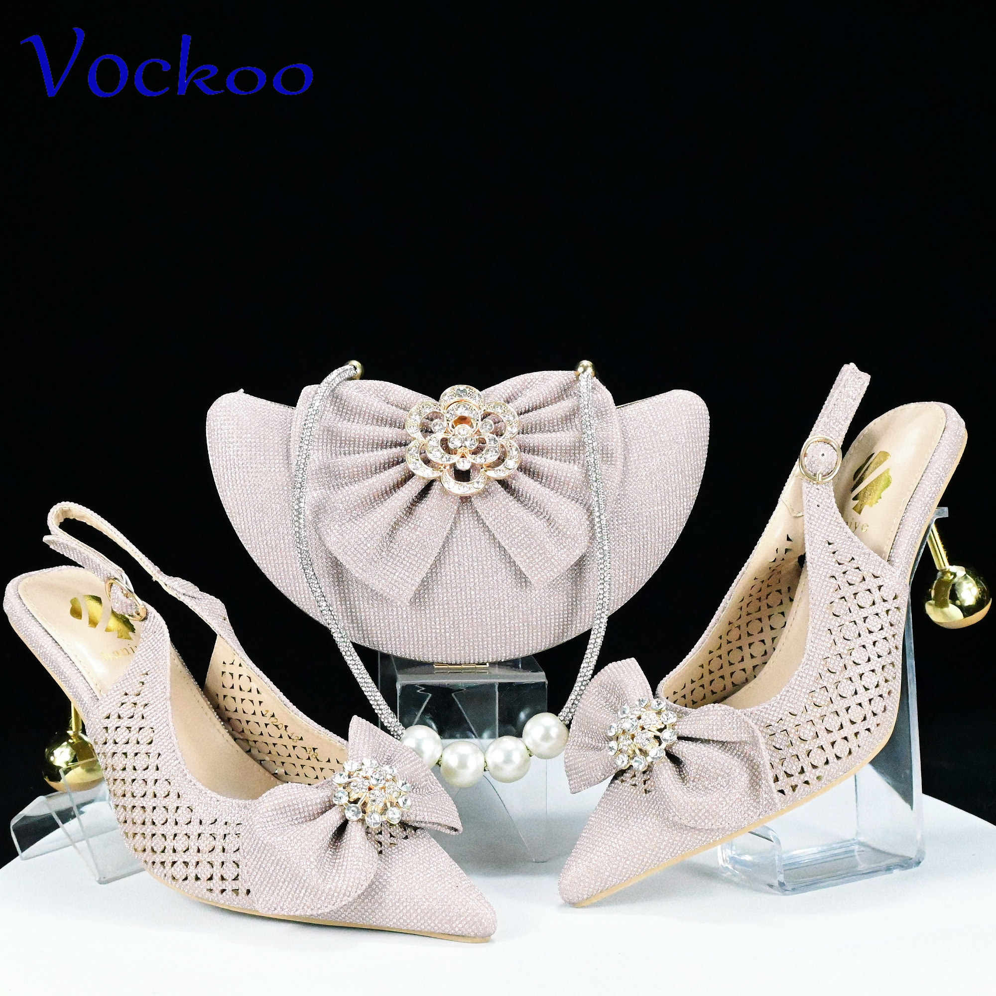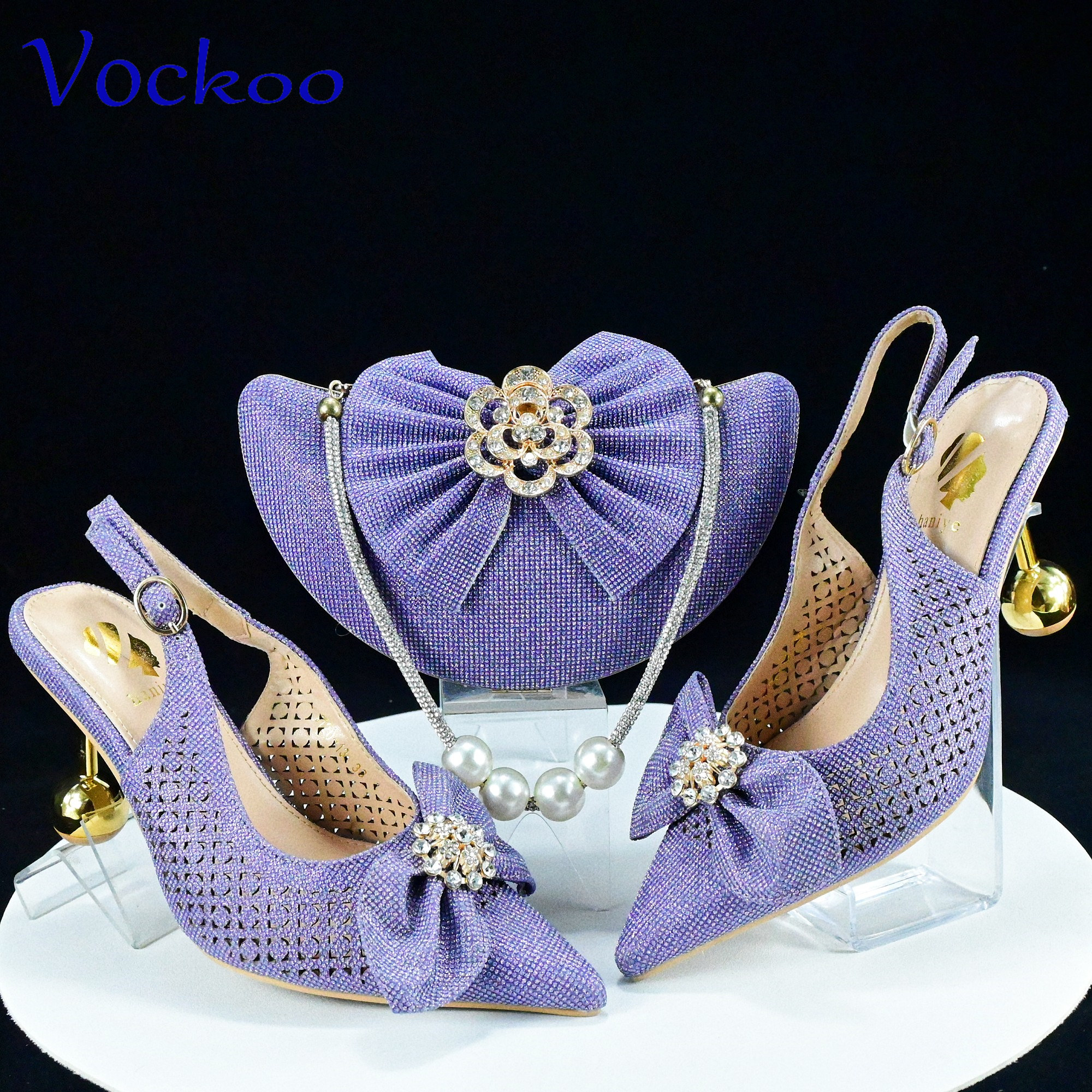 2024 Super High Heels New Arrivals Italian Women Shoes and Bag Set in Pink Color Pointed Toe with Appliques For Dress