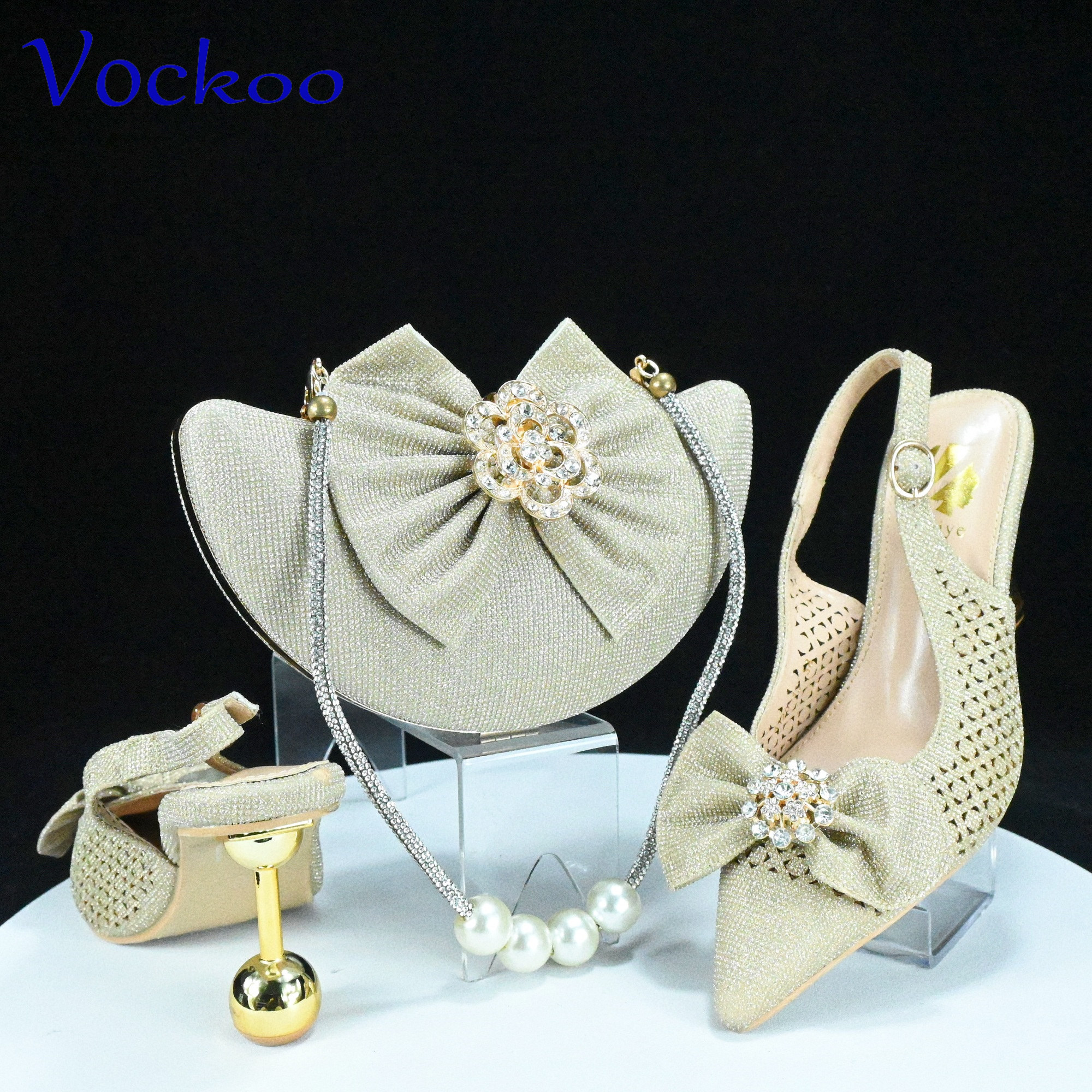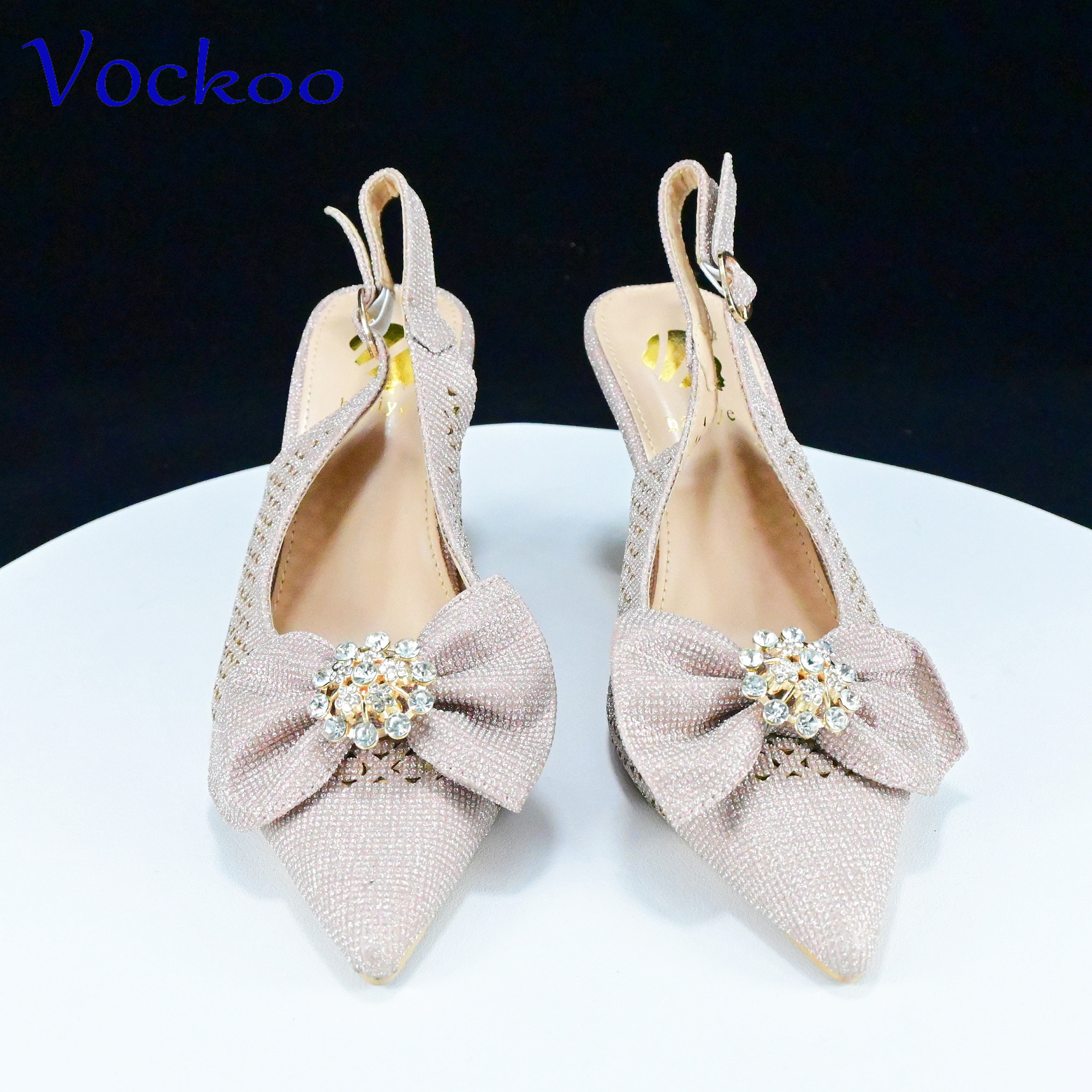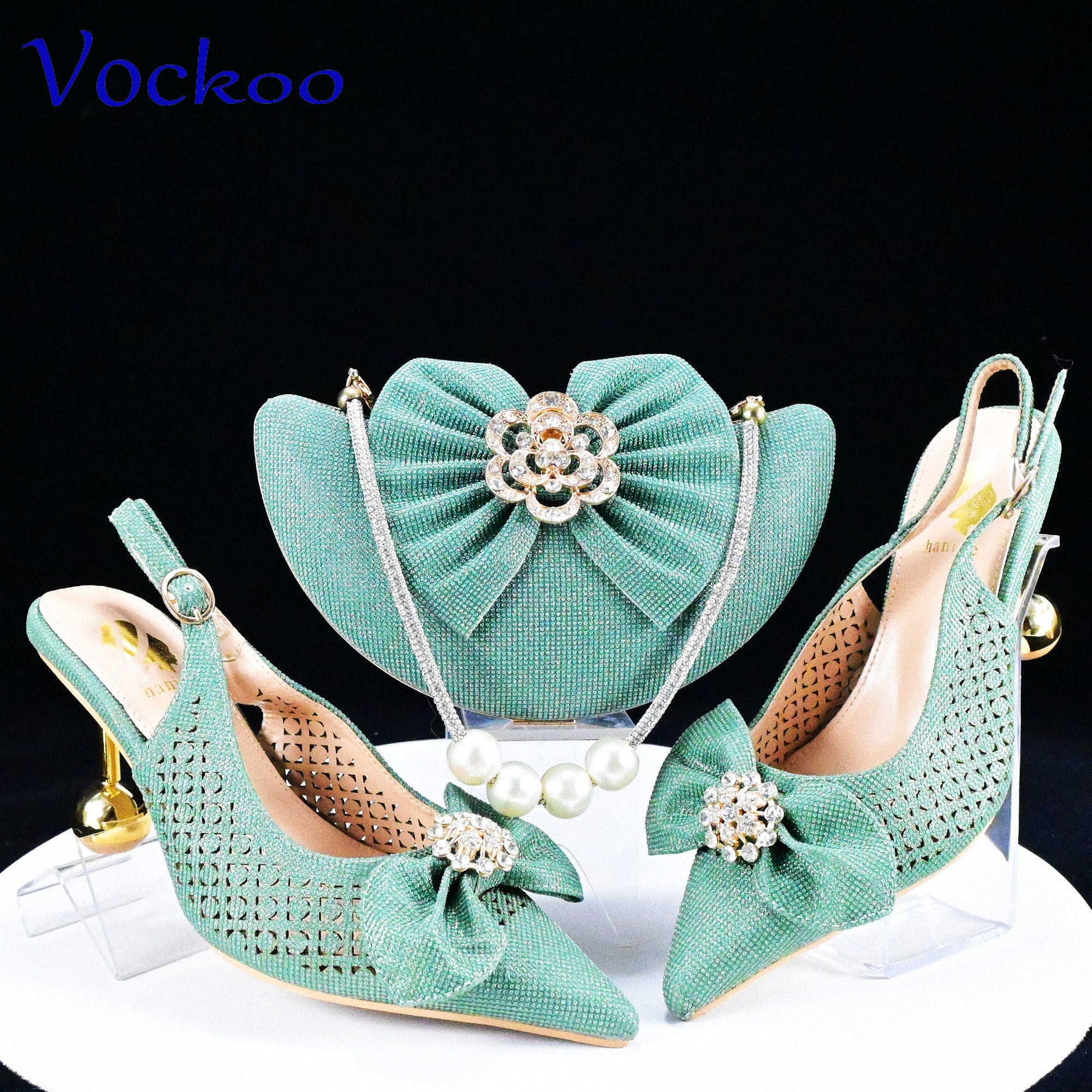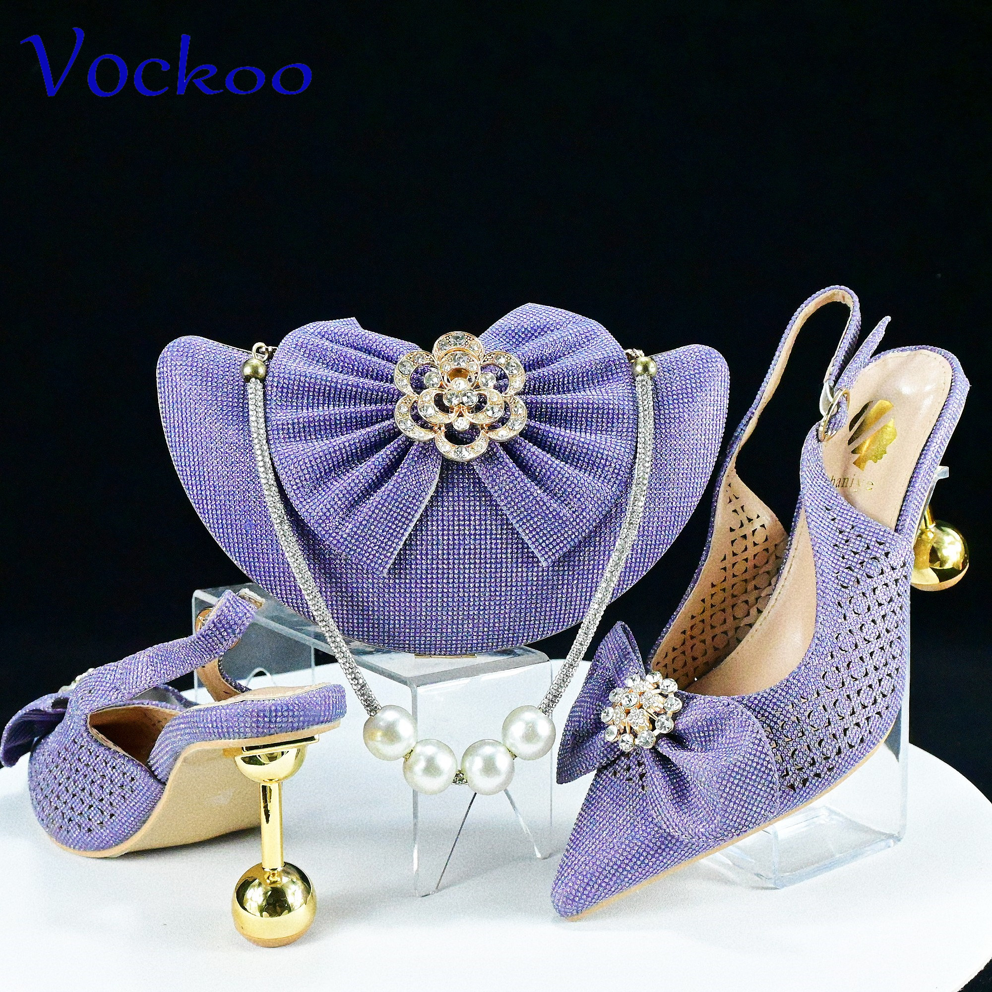2024 Super High Heels New Arrivals Italian Women Shoes and Bag Set in Pink Color Pointed Toe with Appliques For Dress