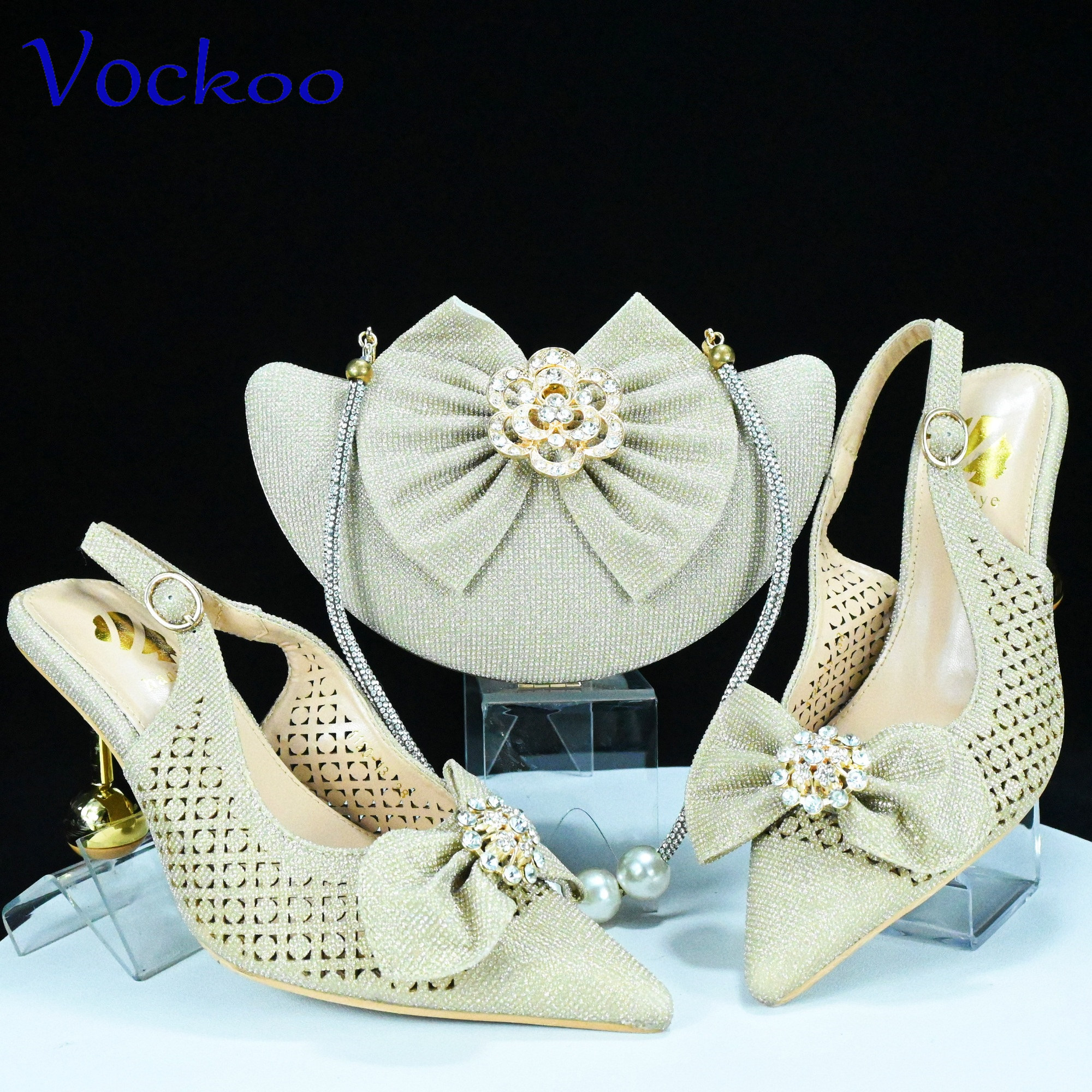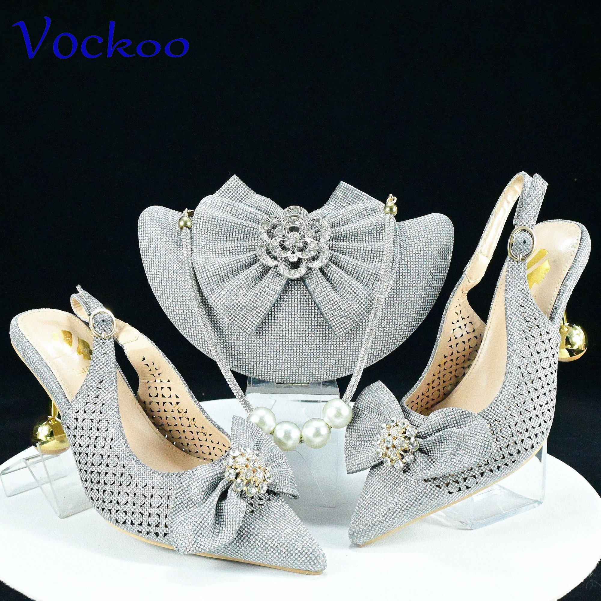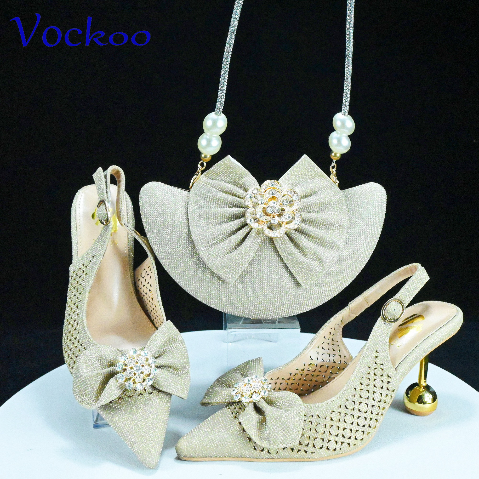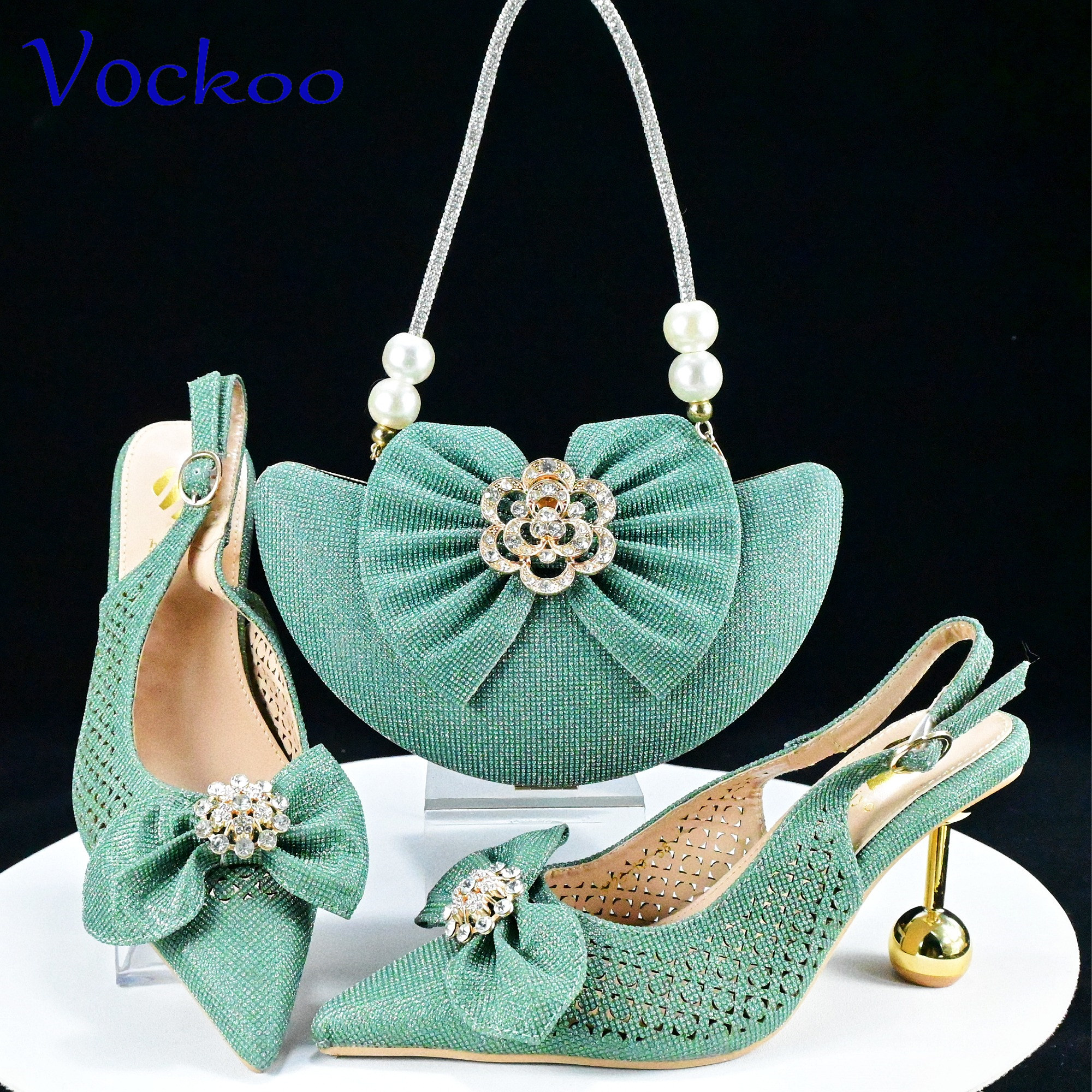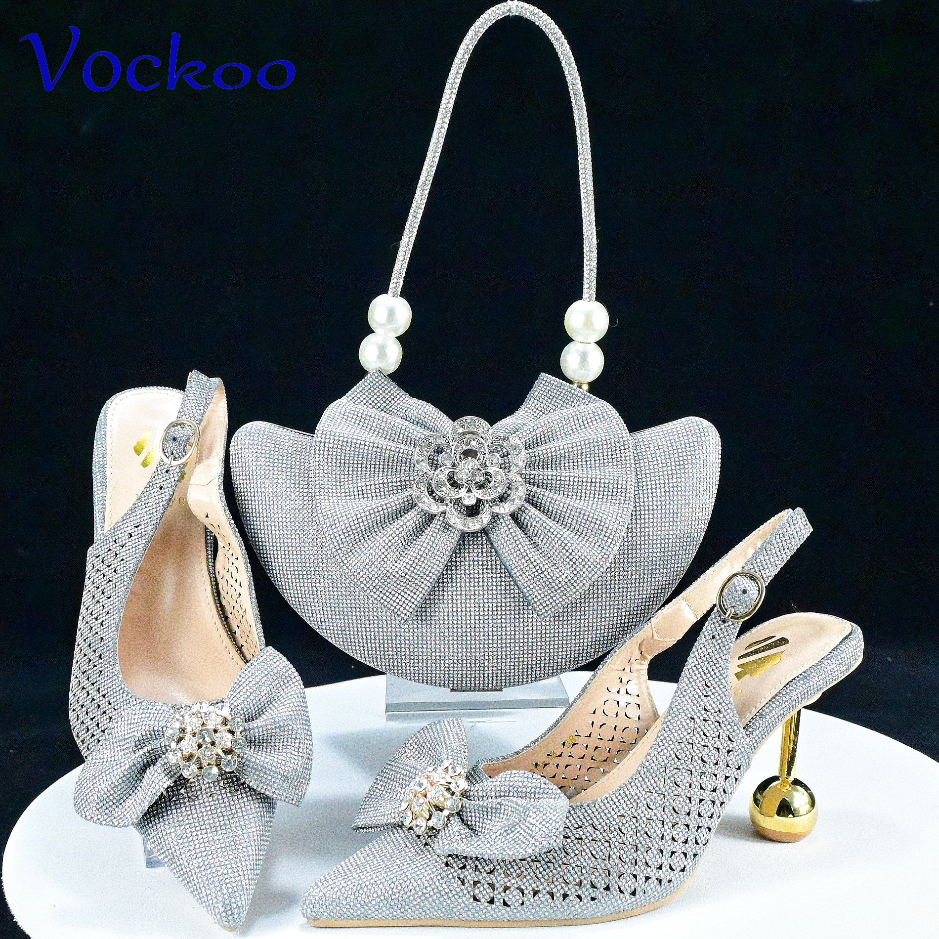 2024 Super High Heels New Arrivals Italian Women Shoes and Bag Set in Pink Color Pointed Toe with Appliques For Dress