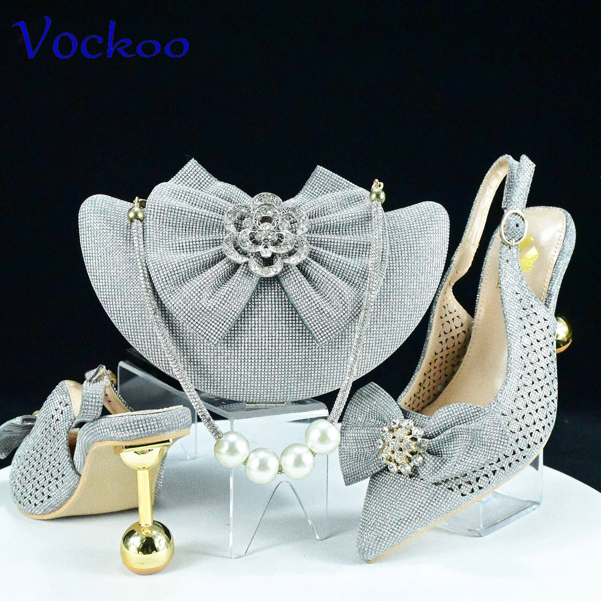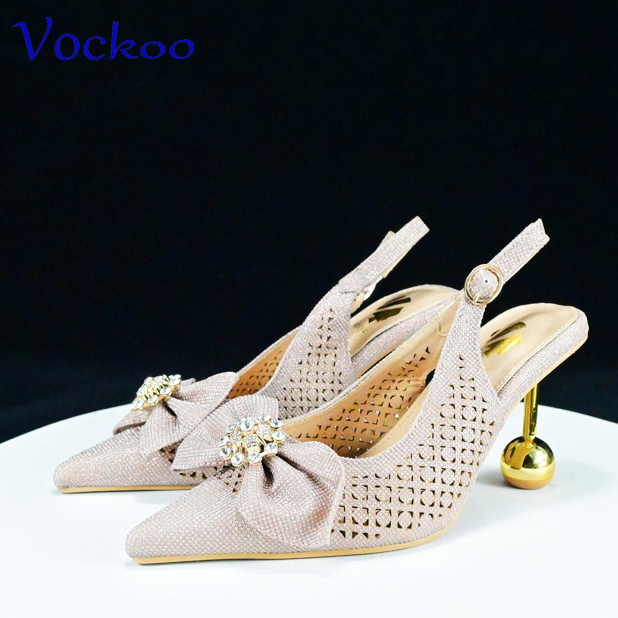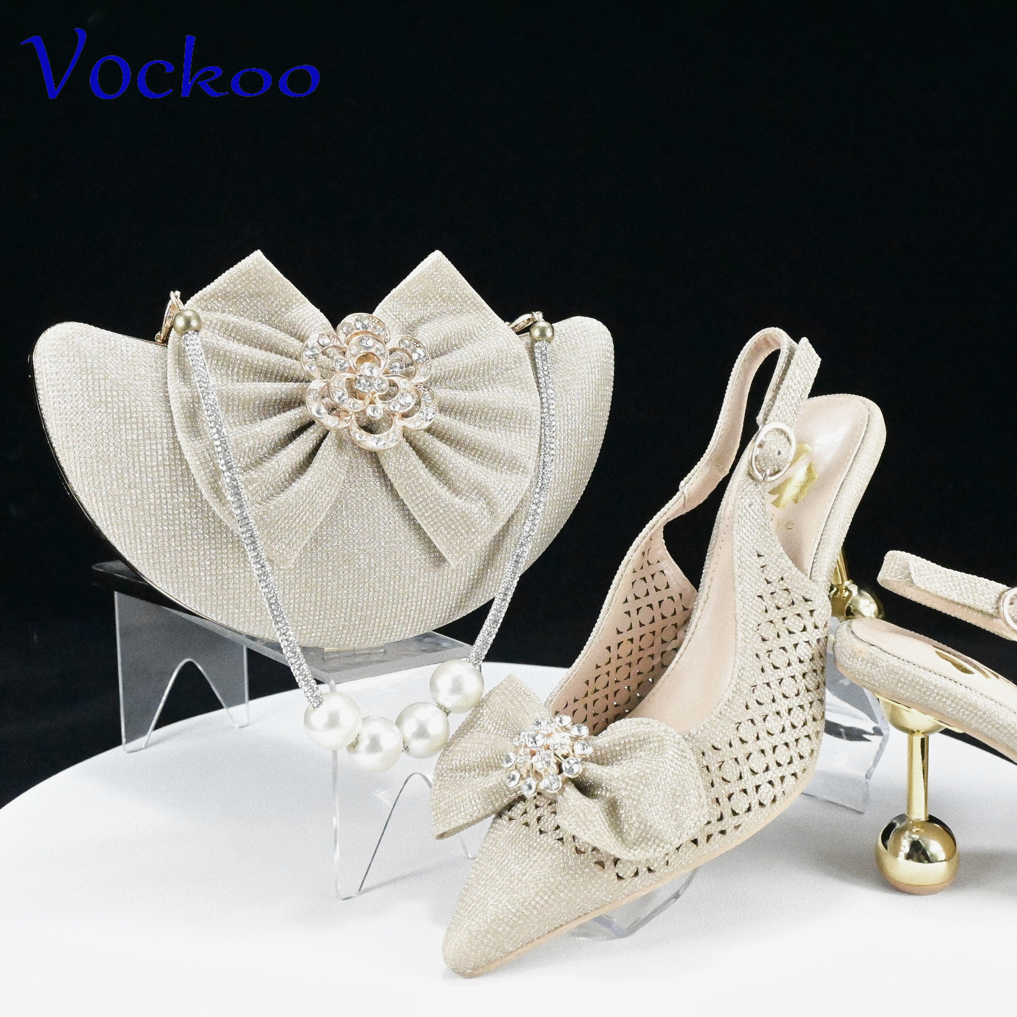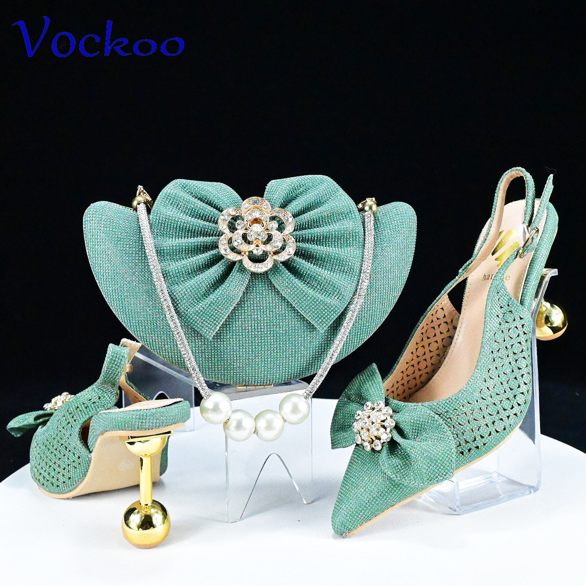 2024 Super High Heels New Arrivals Italian Women Shoes and Bag Set in Pink Color Pointed Toe with Appliques For Dress