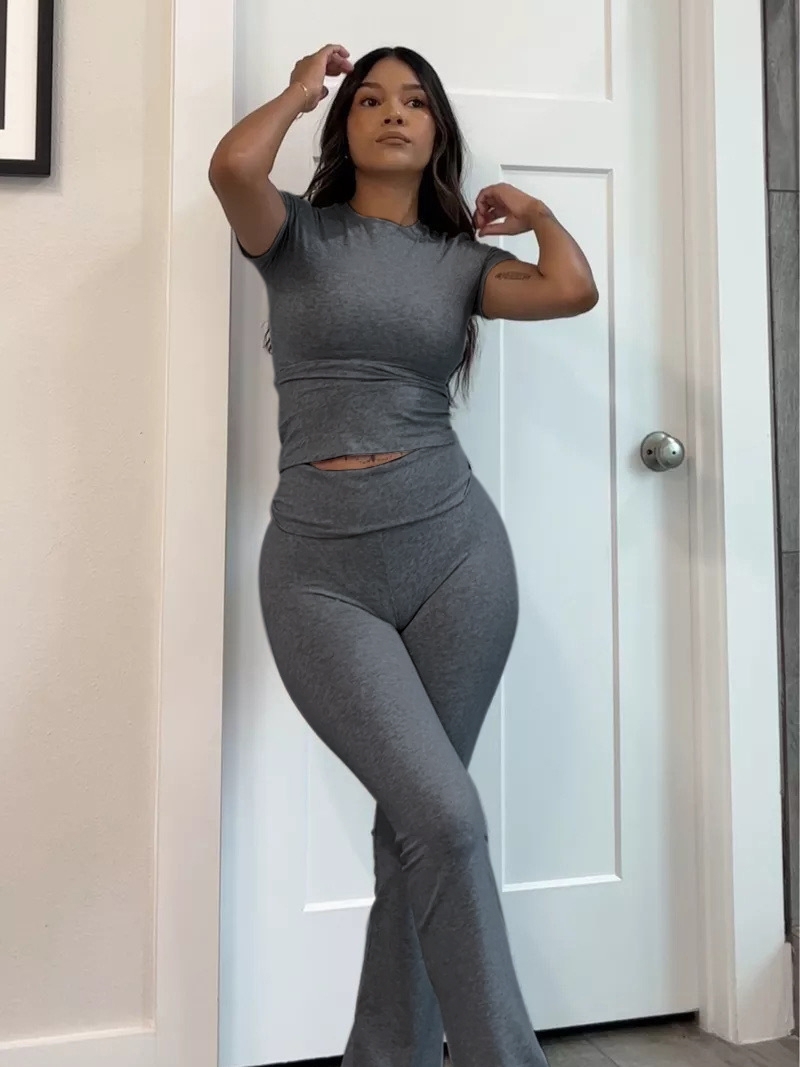 2024 Women 2 Piece Lounge Sets Fold Over Short Sleeve Crop Top And Low Rise Flare Leggings Yoga Pants Set Tracksuit